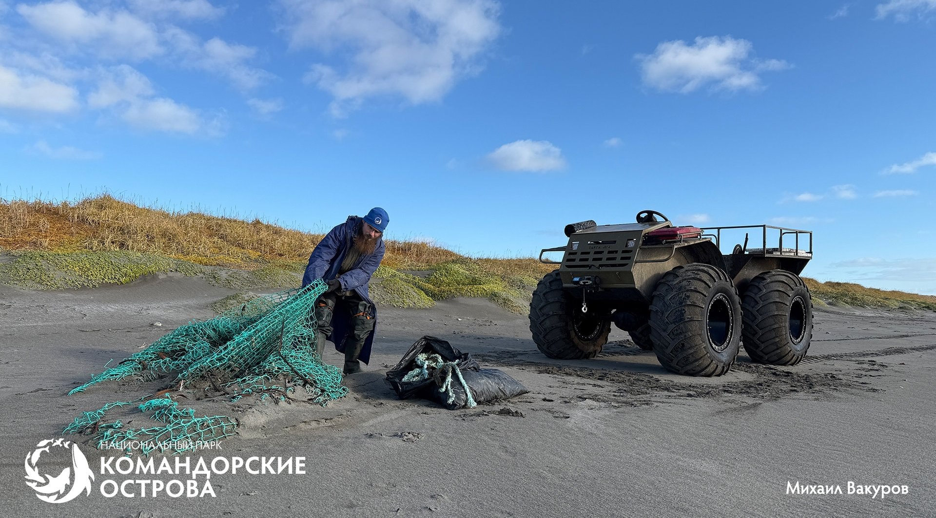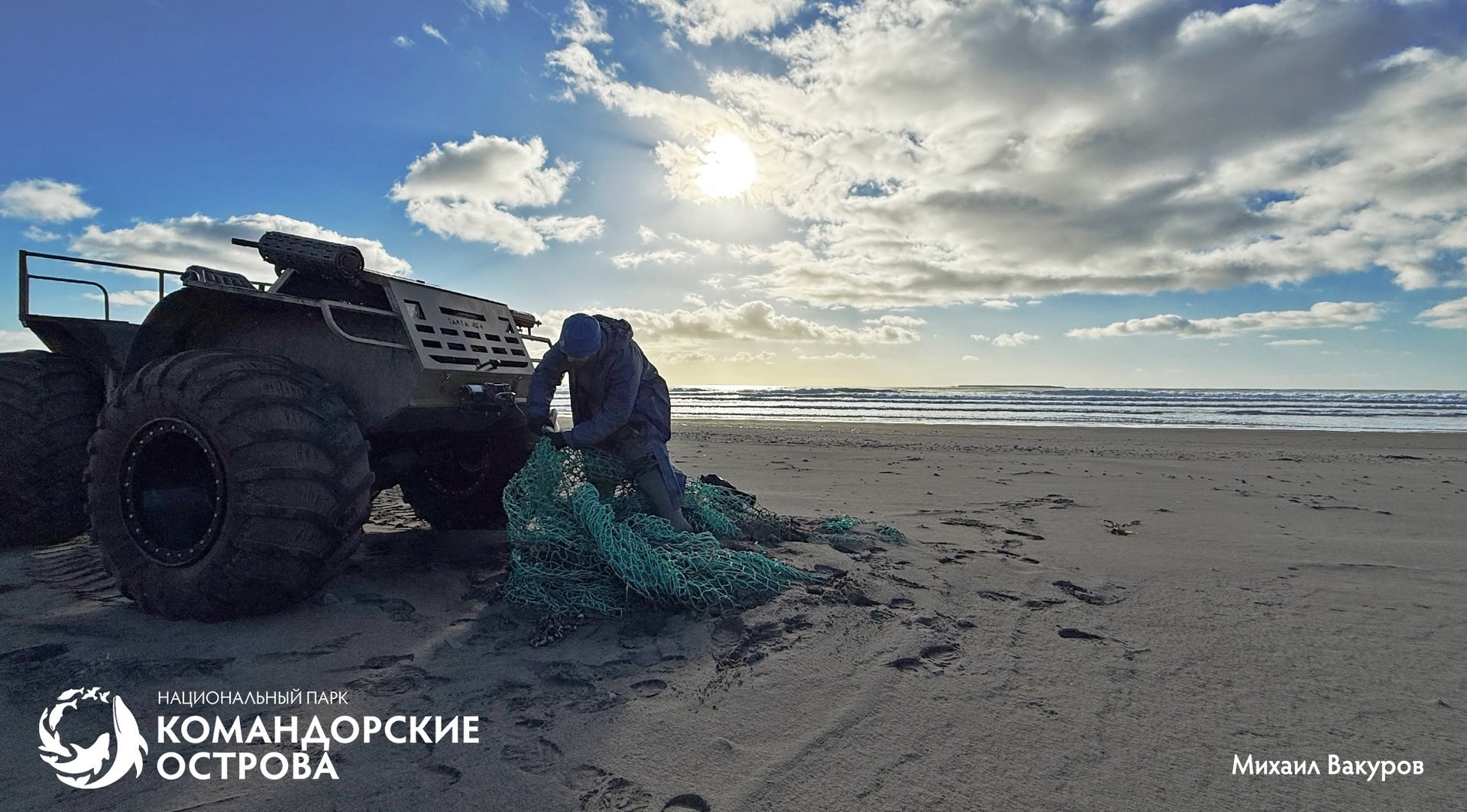 Сотрудник национального парка «Командорские острова» Глеб Шевцов провёл выездное обследование острова Беринга и собрал более 500 кг мусора. Основная часть отходов так называемые «призрачные сети» — заброшенные рыболовные снасти. Такой мусор может убить водных обитателей, так как сети продолжают «ловить» рыб, китов, тюленей и других морских животных.
