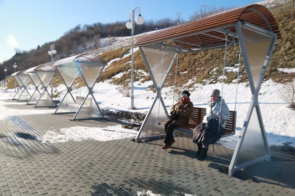 Качели с навесами появились на набережной Оби