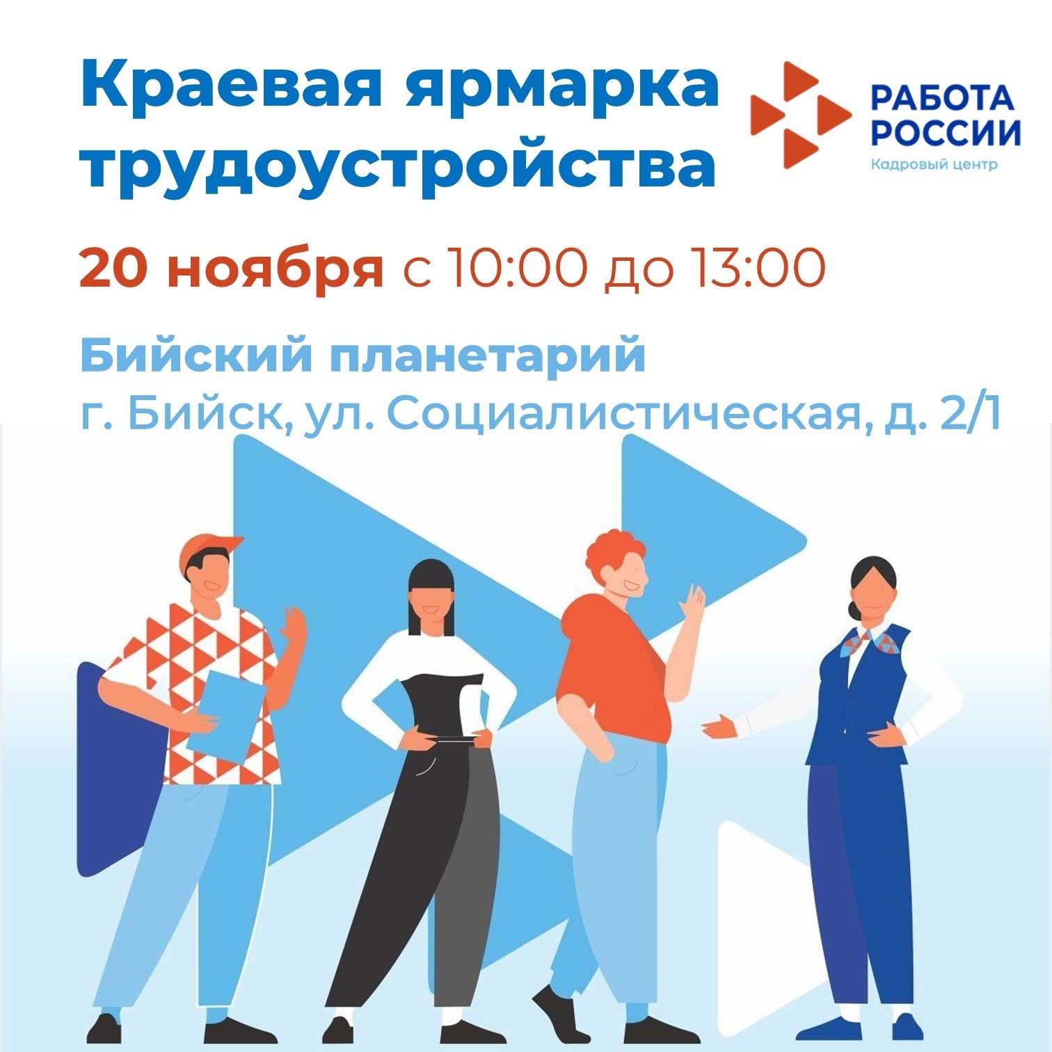 20 ноября 2025 года с 10:00 до 13:00 в Бийском планетарии (ул. Социалистическая, д. 2/1) пройдет краевая ярмарка вакансий.