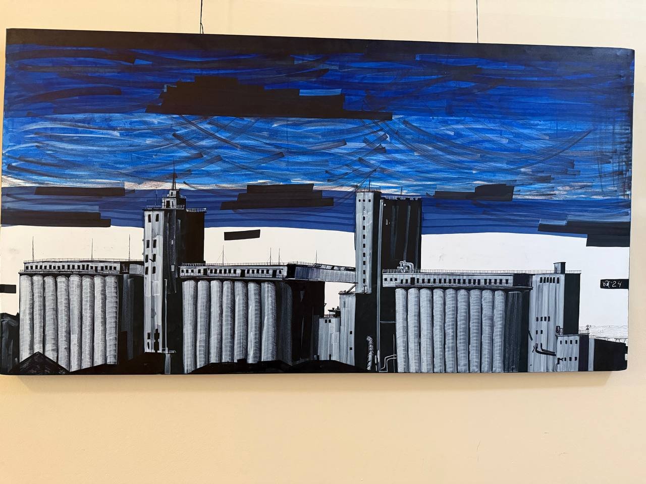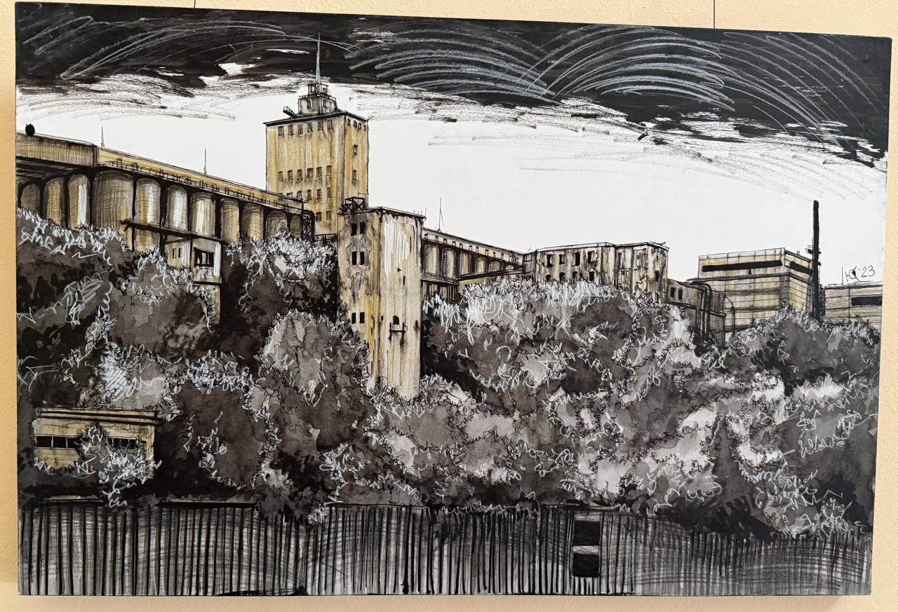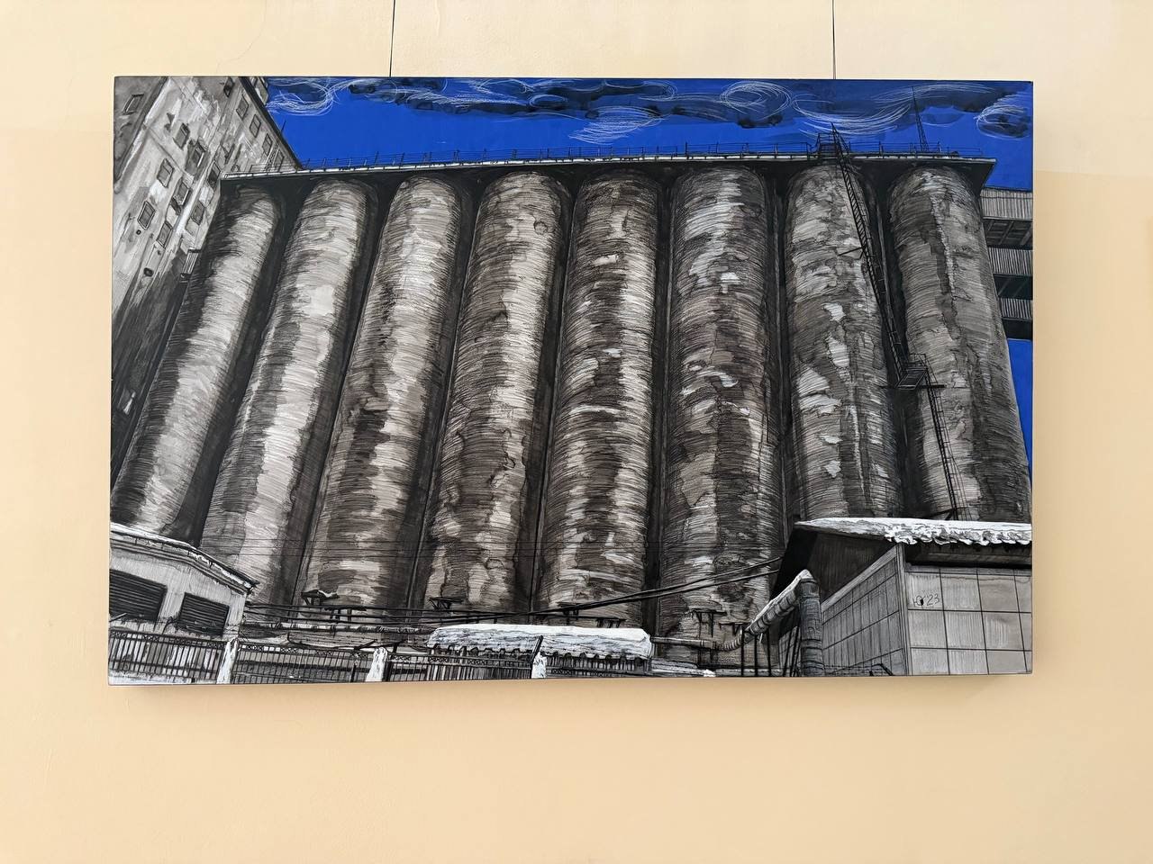 Первый образ элеватора Юрий Гребенщиков написал три года назад. Сейчас у него больше 50 картин, изображающих промышленное предприятие с разных ракурсов в разное время года. В каждой автор зашифровал послание для своих близких, которое на первый взгляд не заметит обыватель.