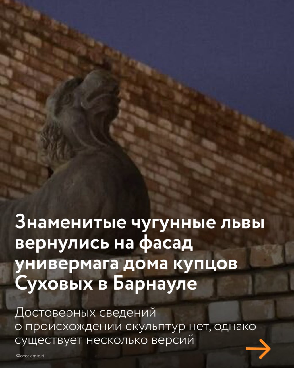 Чугунные львы вернулись на фасад универмага дома купцов Суховых в Барнауле. Как они там появились? Есть несколько версий