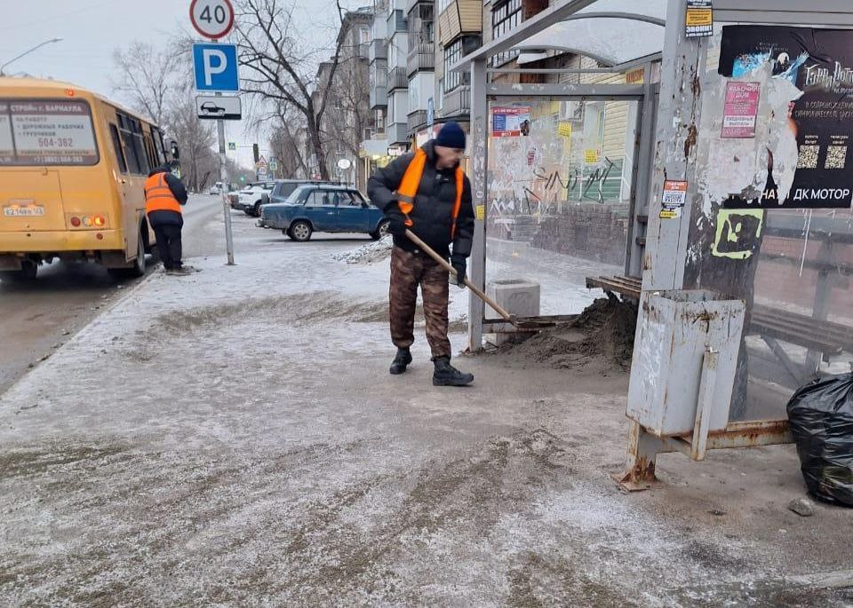 Дорожная служба проводит противогололедную обработку на улицах Барнаула