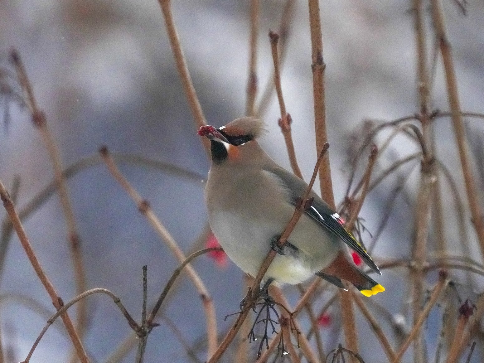 В Алтайский заповедник прилетели свиристели — удивительные зимние птицы. Их цепкие коготки помогают ловко срывать самые труднодоступные ягоды.