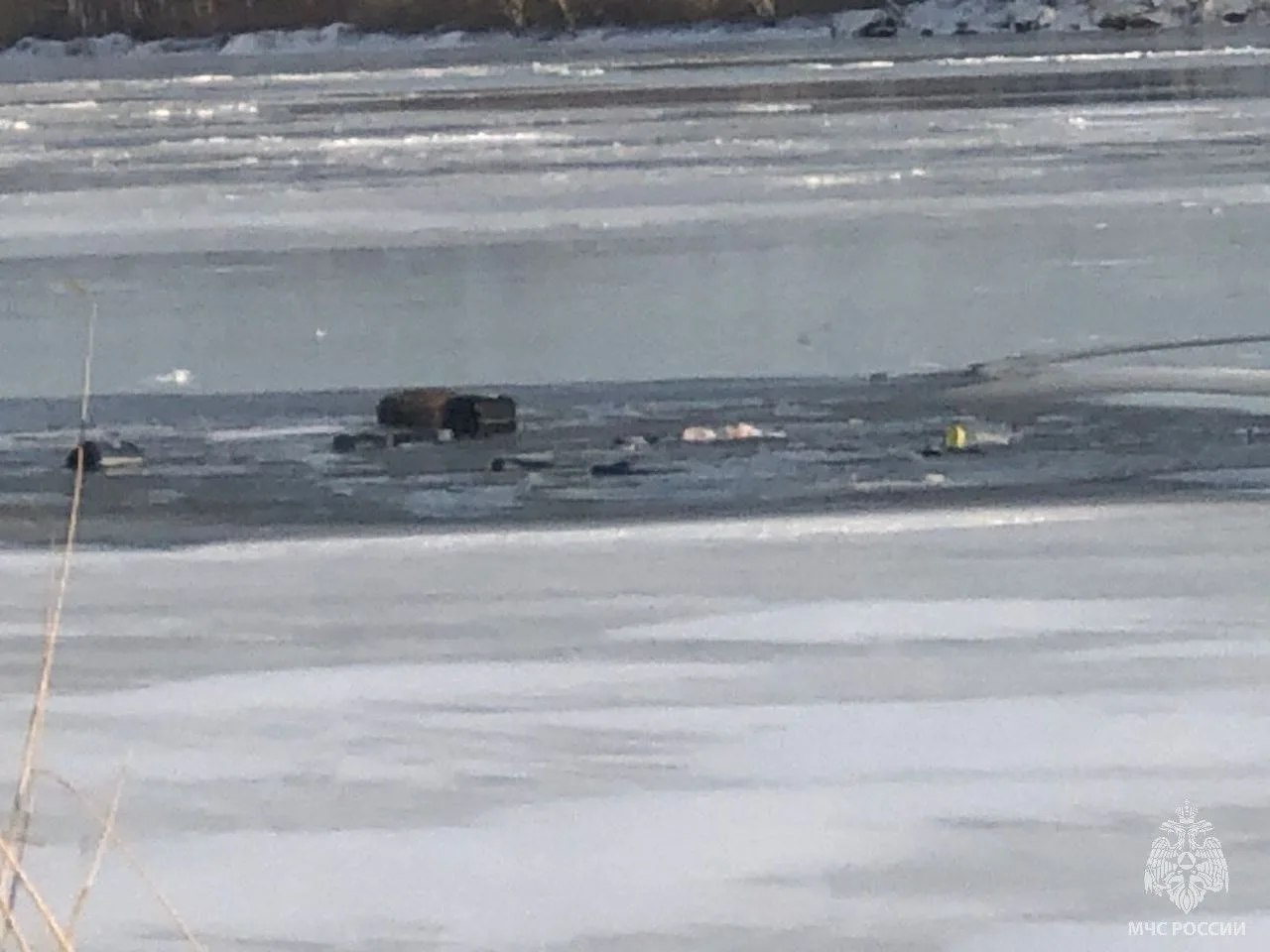 Впоследствии специалисты выяснили, что два человека выехали на мотобуксировщике на поверхность озера и провалились в полынью. Тела утонувших из воды извлекали их родственники, сообщает краевое МЧС.