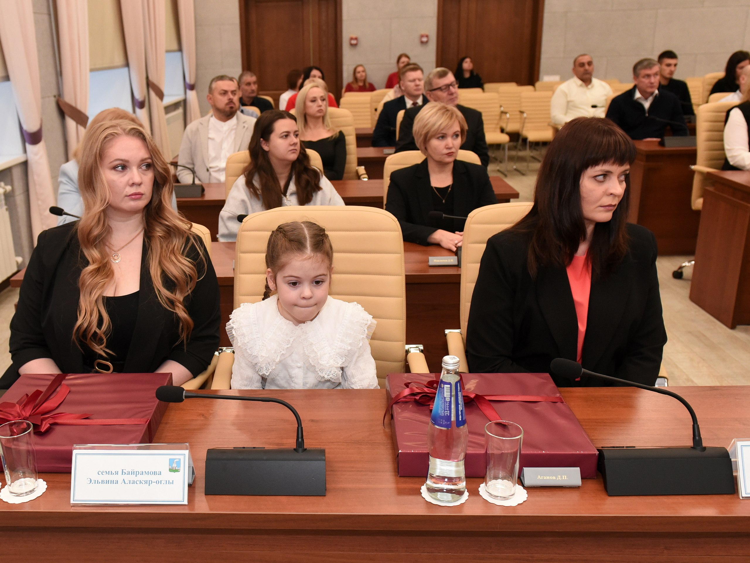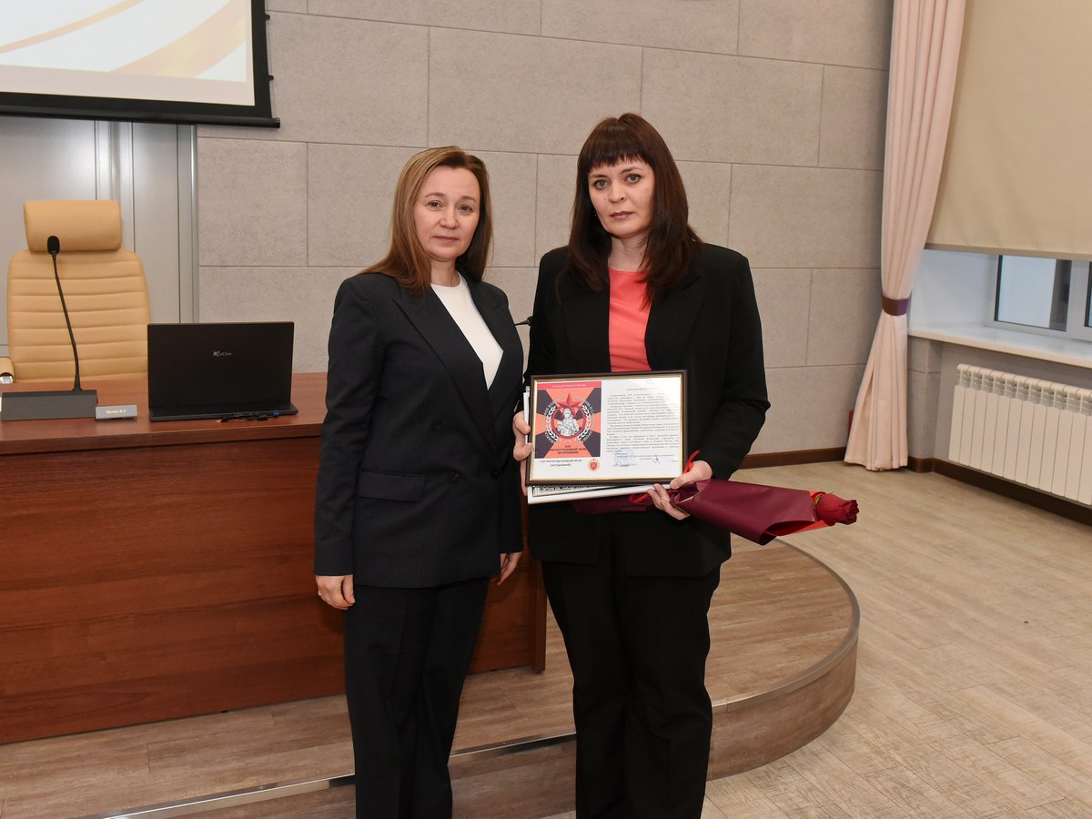 Благодарственные письма от командиров войск и памятные адреса от администрации города вручены семьям участников СВО: матери младшего сержанта Владислава Антипова Маргарите Масловой, а также супруге и дочери гвардии старшего сержанта Эльвина Байрамова - Екатерине Байрамовой и Розе Байрамовой.