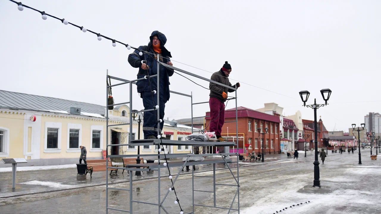 На пешеходной части улицы Мало-Тобольской начался первый этап работ — монтаж обновлённого светового потолка.