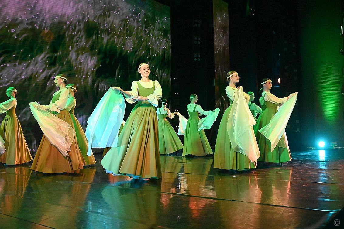 От имени главы города для присутствующих в зале женщин на сцену вынесли корзину с цветами, а потом начался творческий подарок - концертная программа Государственного ансамбля песни и танца «АЛТАЙ» имени А.Ф. Березикова.