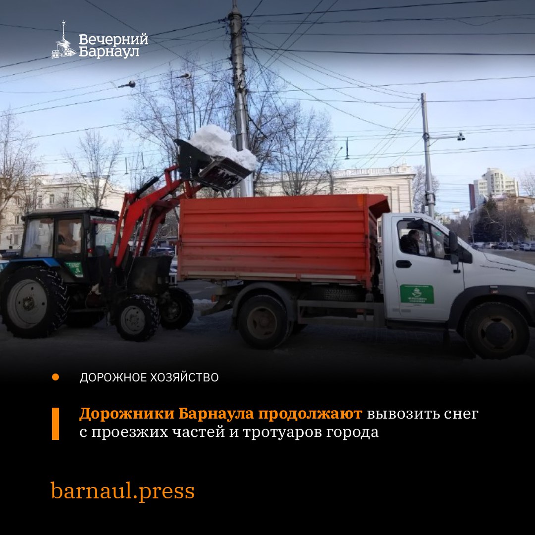 Так, снег сегодня после очистки остановок и подходов к пешеходным переходам вывозят с улиц Малахова, Германа Титова, Северо-Западной, Змеиногорского тракта и других участков.