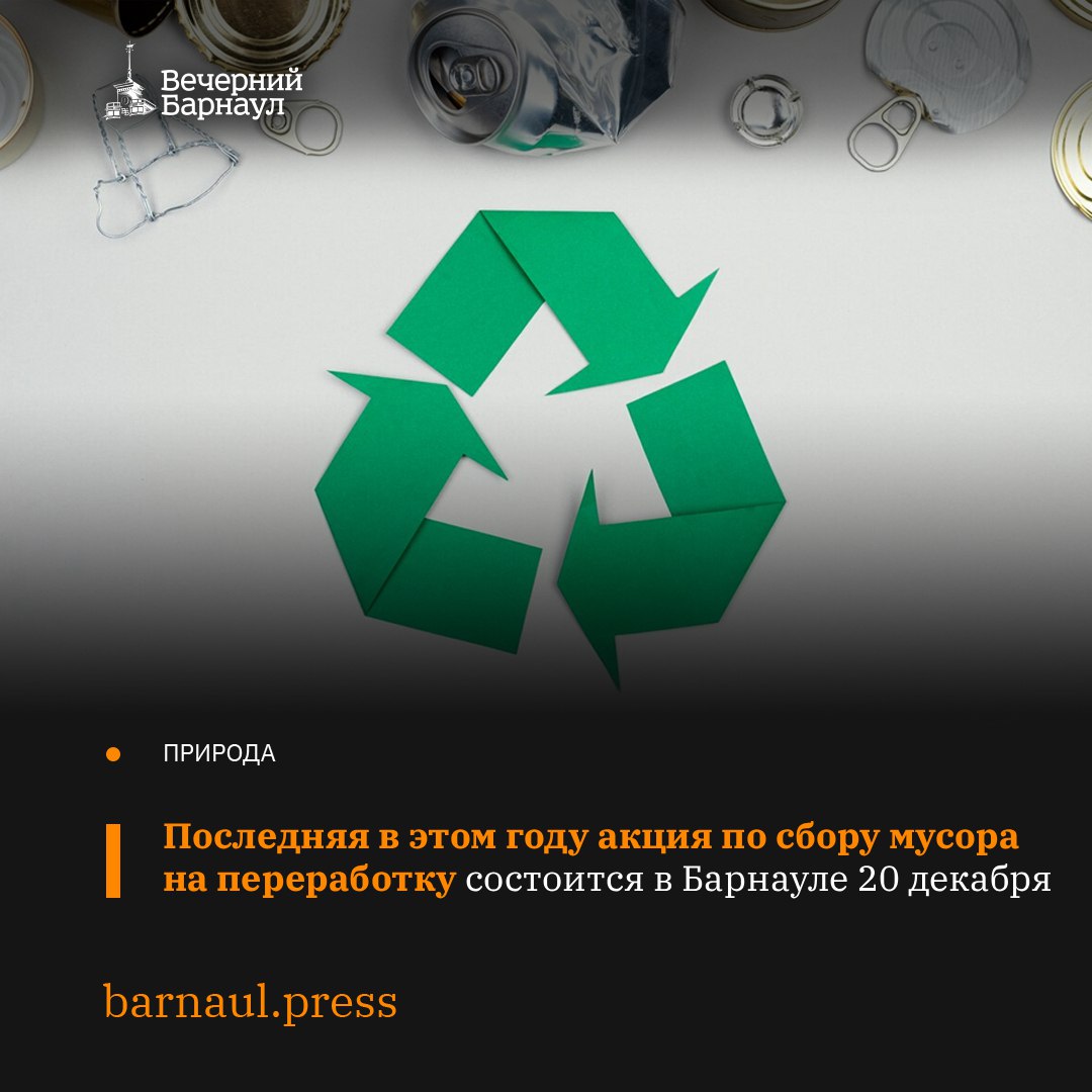 20 декабря на территории Барнаула пройдёт последняя в 2025 году акция по раздельному сбору вторсырья.