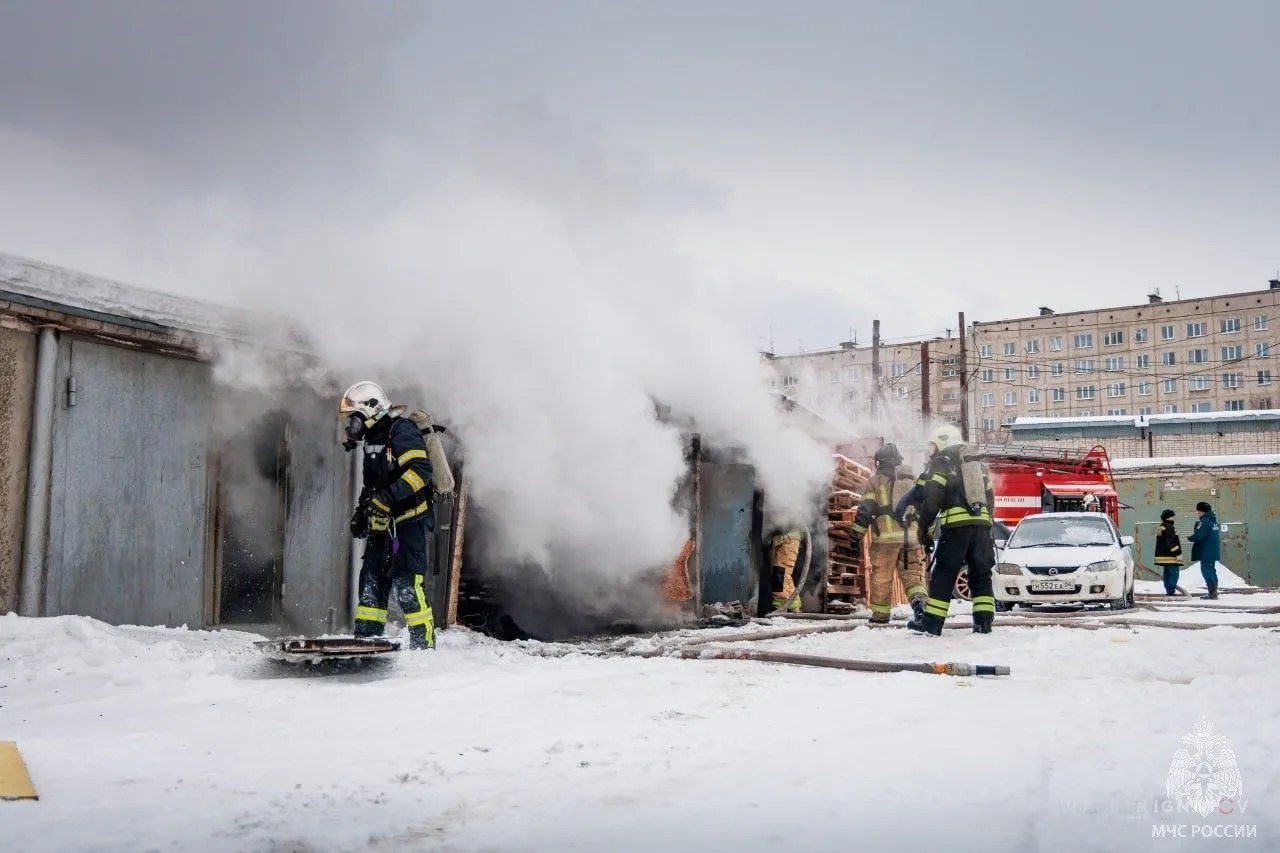 Возгорание произошло сегодня в гаражно-строительном кооперативе на улице Трактовой. Пламя охватило два гаража, существовала угроза его распространения.