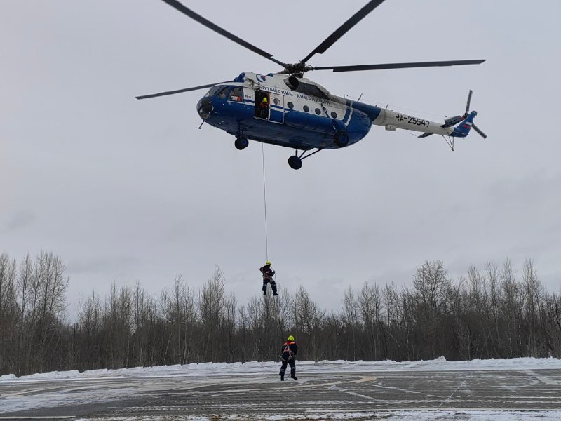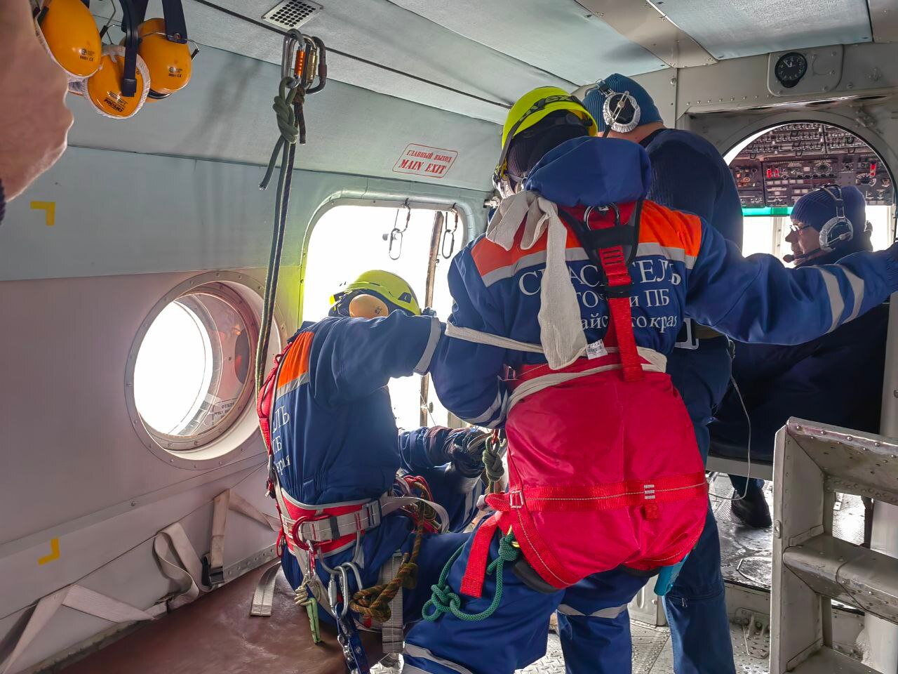 Учебное десантирование спасателей Алтайского края с вертолета Ми-8 прошло успешно