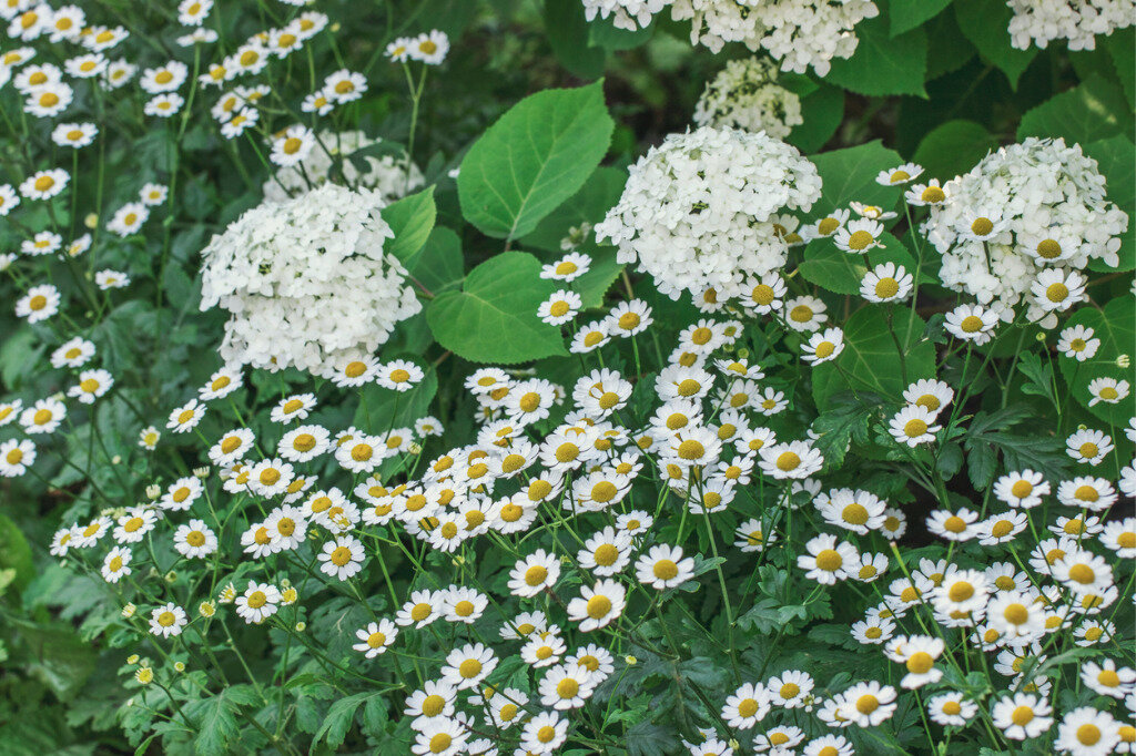 Цветники можно адаптировать под разные условия освещения. В полутенистых участках замечательно приживется гортензия древовидная, обладающая роскошными соцветиями, или чубушник, который добавит многие нотки в оформление. Для более яркого эффекта стоит запрограммировать несколько слоев с лесными травами и многолетниками, которые будут радовать глаз в течение всего сезона.