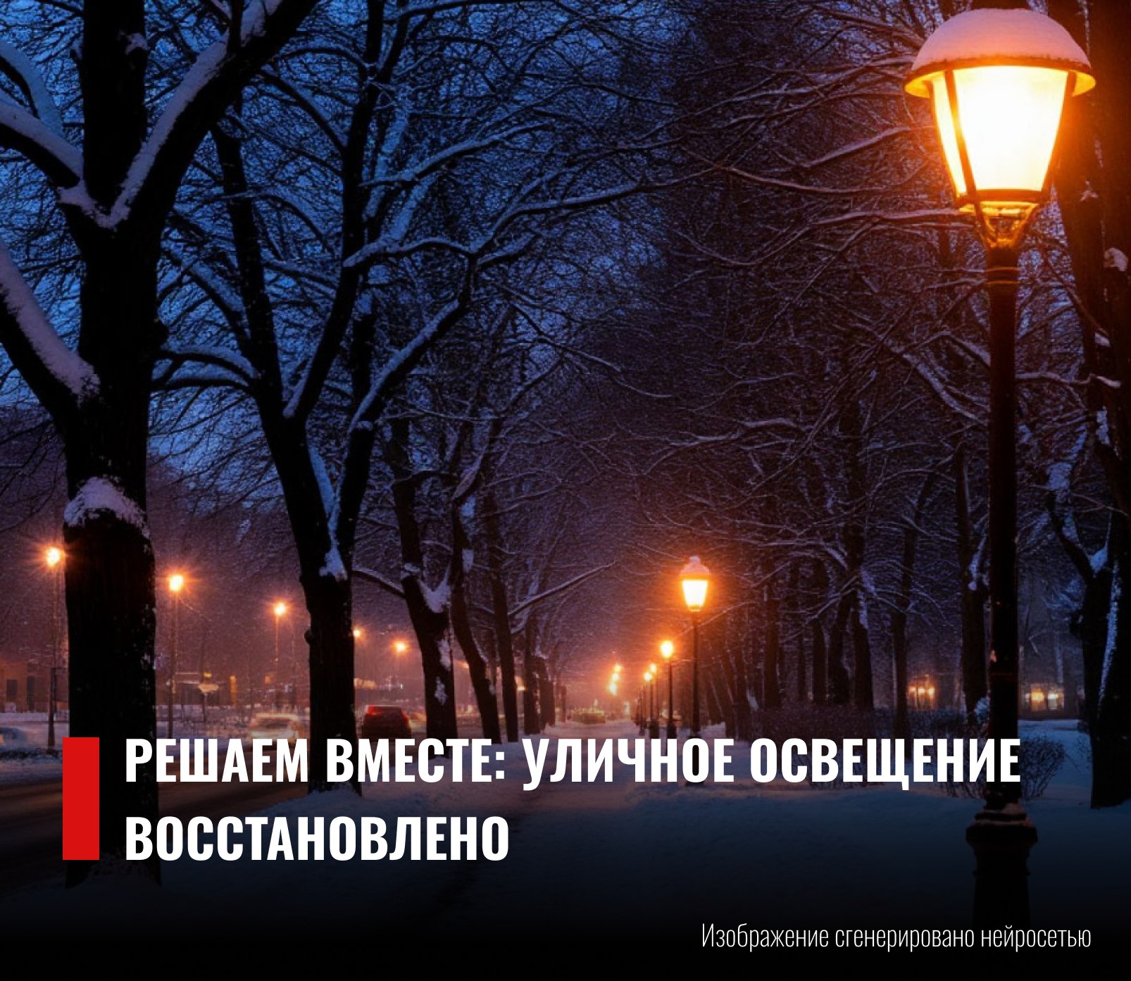 Специалисты приняли обращение в работу, подрядной организацией было восстановлено уличное освещение по указанному в обращении участку.