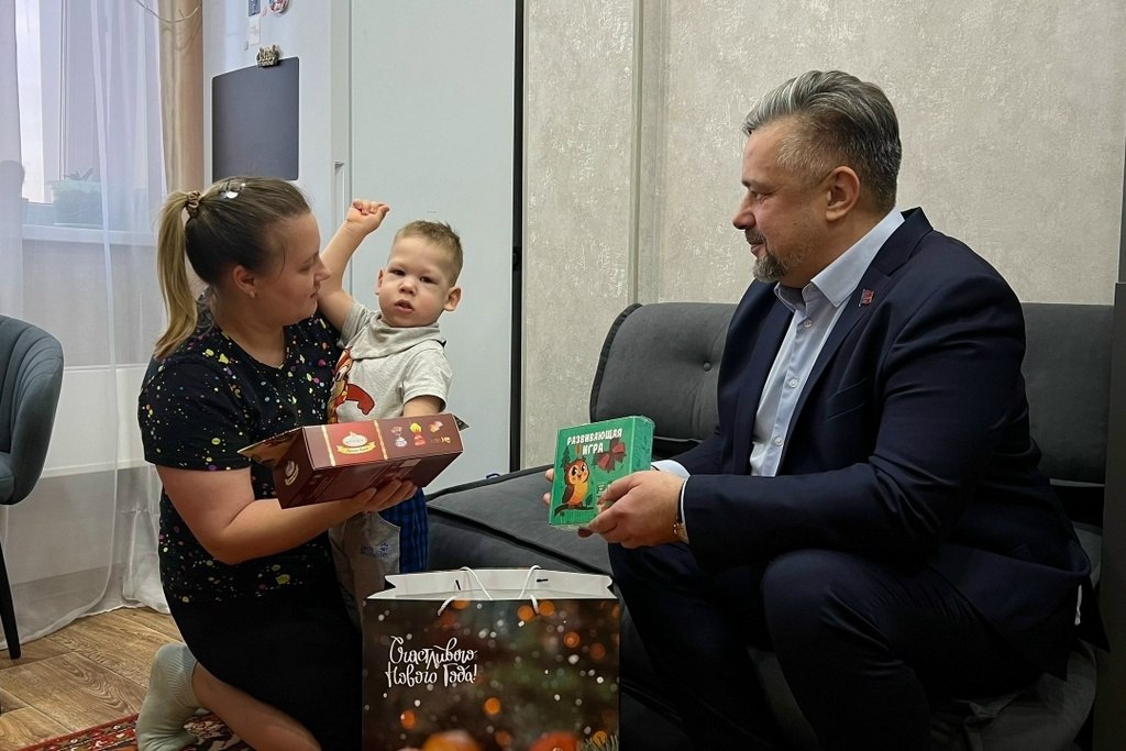 Депутат АКЗС Григорий Бахтин тоже поздравил с Новым Годом ребят из Бийска. Девочка Саша мечтала о наборе косметики и ночнике. А маленькому мальчику Артему требовались развивающие игры и фитбол.