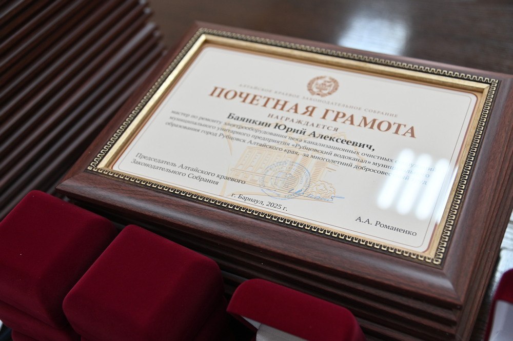 Председатель Алтайского краевого Законодательного Собрания Александр Романенко вручил награды краевого парламента труженикам Курьинского, Змеиногорского, Локтевского районов и города Рубцовска. Спикер АКЗС также поздравил с наступающим Новым годом муниципальных служащих этих территорий.
