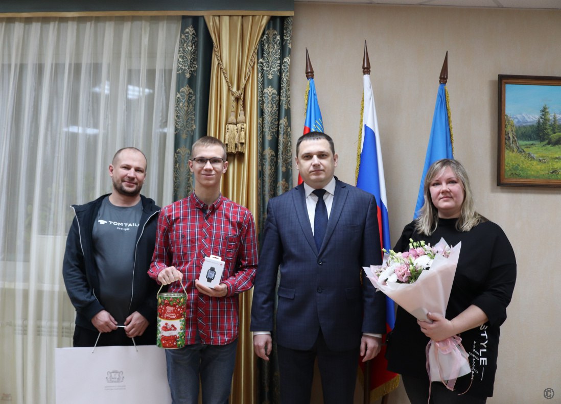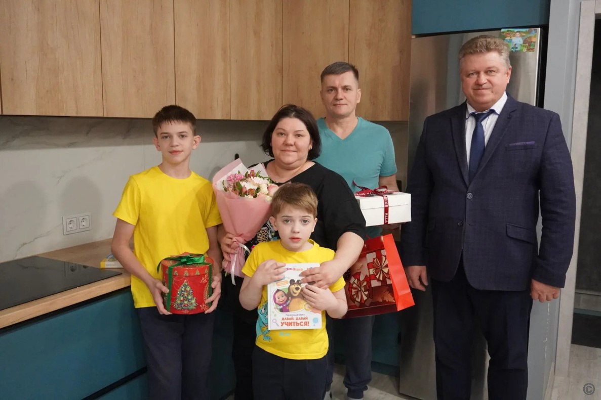 Заместитель главы администрации города по городскому хозяйству Сергей Татьянин поздравил с наступающим Новым годом и подарил конструктор 10-летнему Сереже.