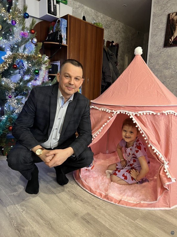 Заместитель главы по дорожному хозяйству и транспорту Андрей Курышин исполнил мечту 3-летней Полины и подарил ей домик-палатку.