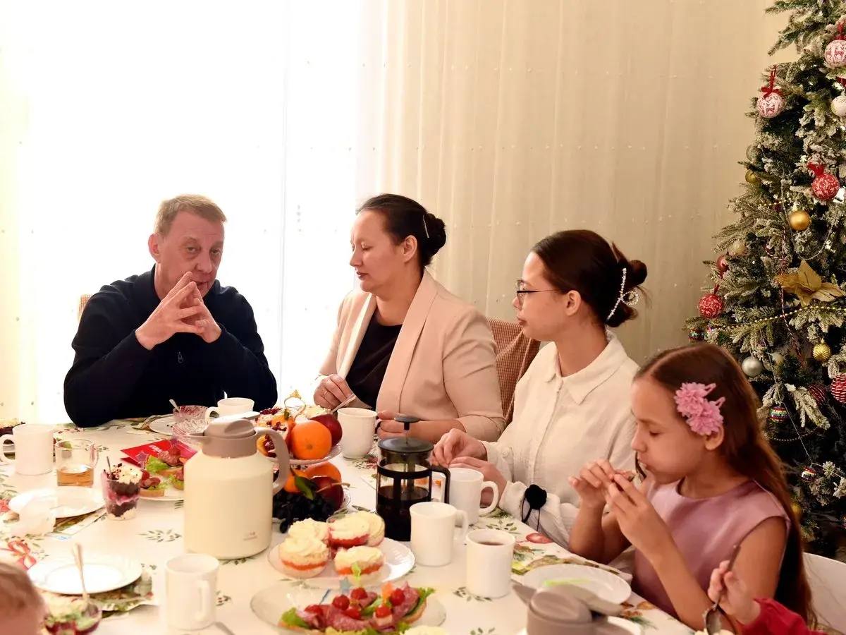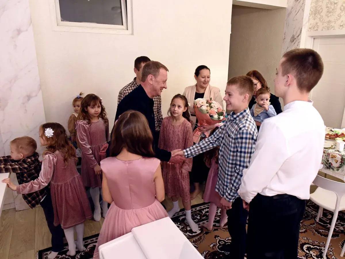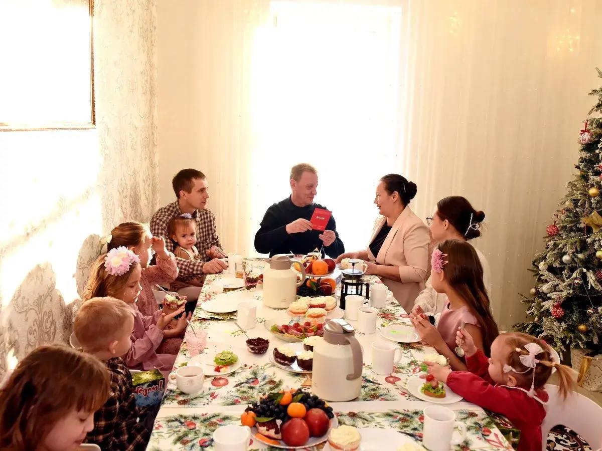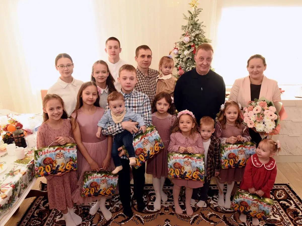 Вячеслав Франк поздравил семью Елены и Сергея Брит, в которой воспитывается 14 детей, с наступающим Новым годом и Рождеством, пожелал крепкого здоровья, счастья, благополучия и поблагодарили их за верность семейным ценностям.