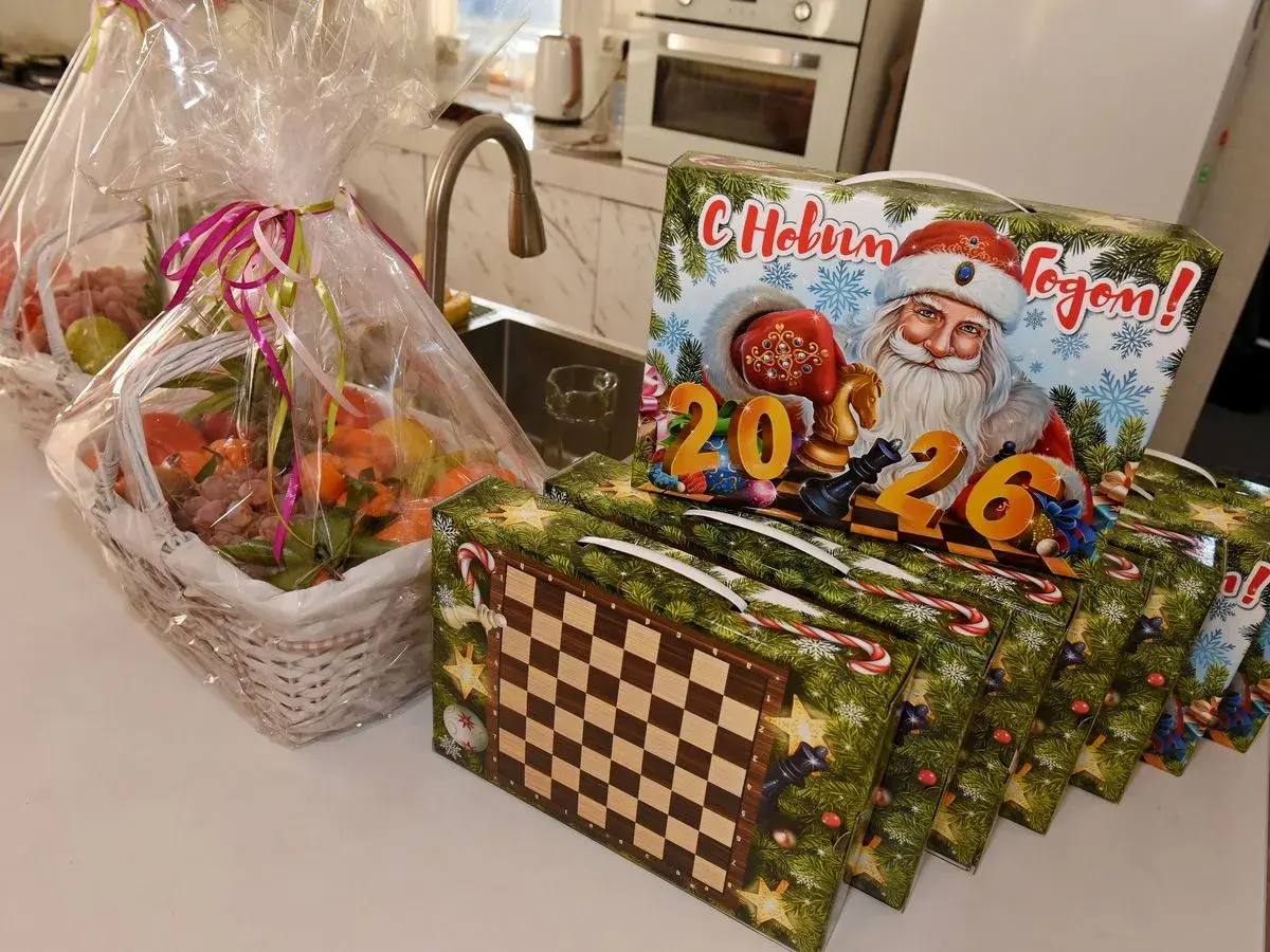 Гости вручили ребятишкам сладкие подарки, хозяйке дома Елене Брит - цветы, для всей семьи - корзины с фруктами к праздничному столу, а также сертификат на покупку бытовой техники отПочетного гражданинНодара Шонии.
