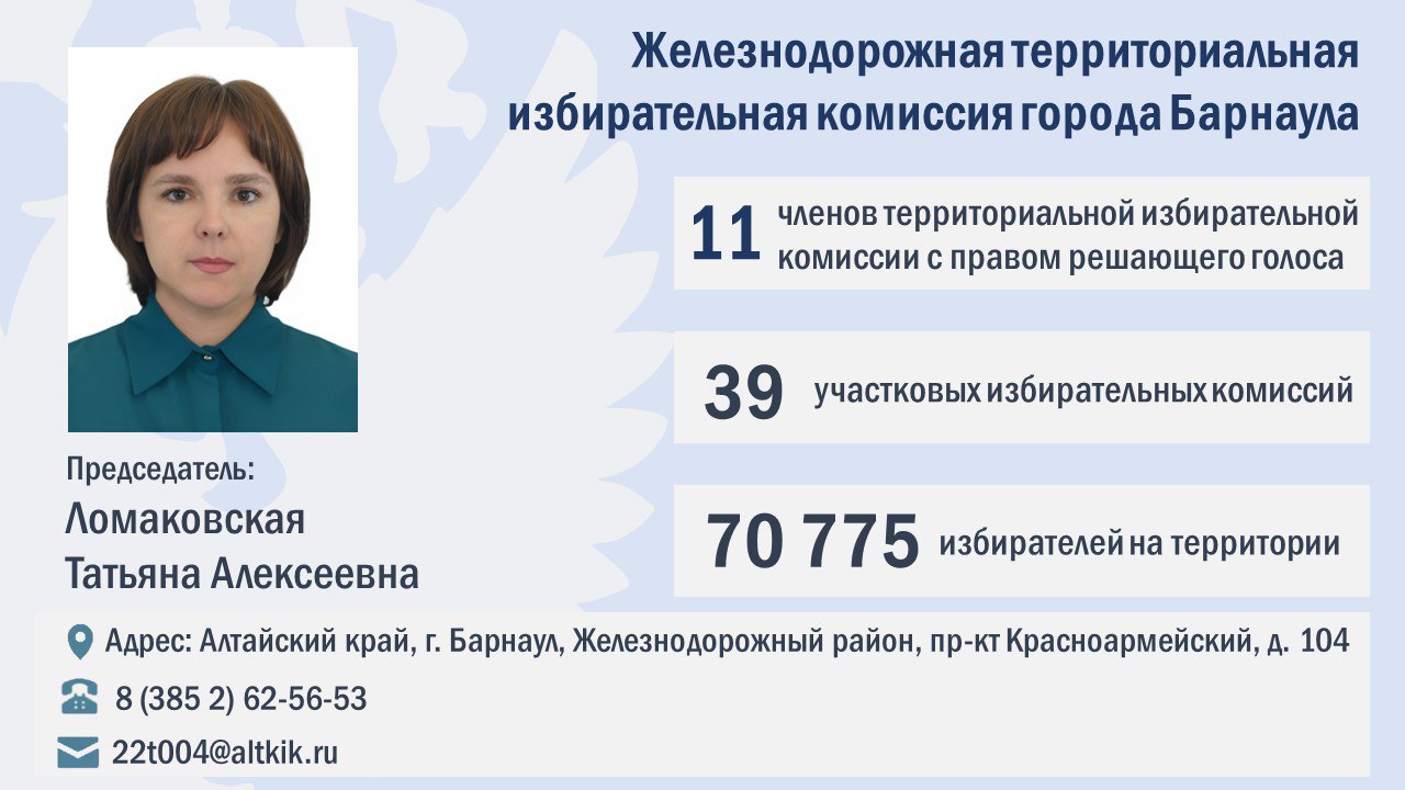 Поздравляем с назначением коллектив Железнодорожной ТИК города Барнаула и желаем успешной и плодотворной работы на благо развития избирательной системы и жителей города!