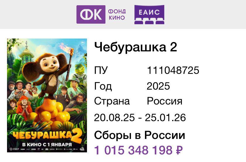 «Чебурашка 2» собрал более миллиарда рублей — на второй день проката