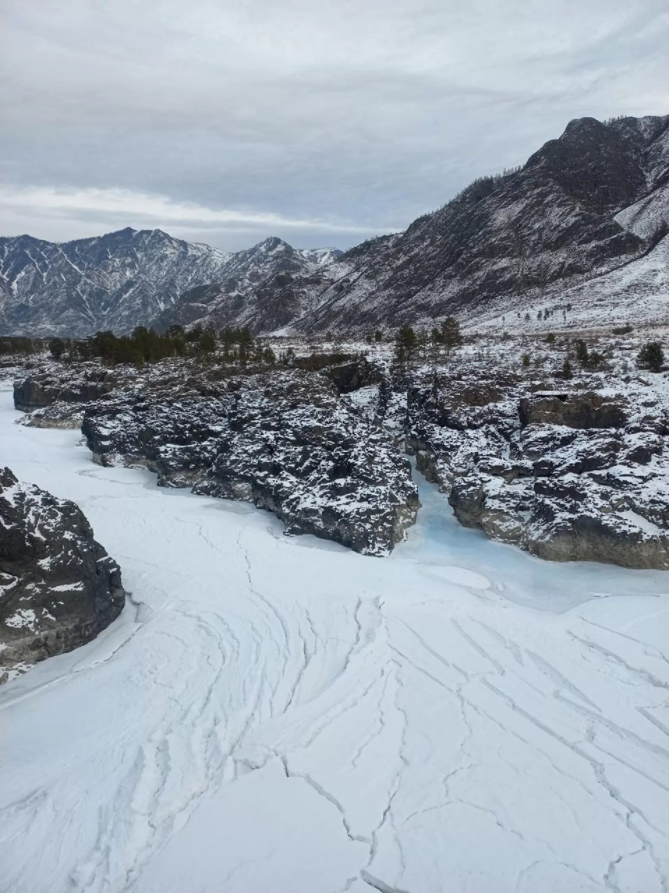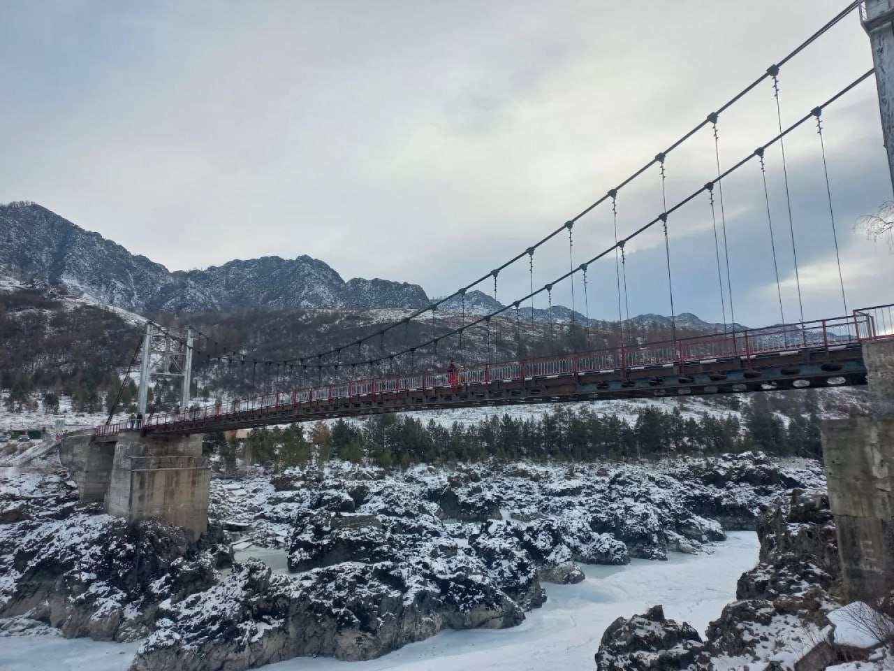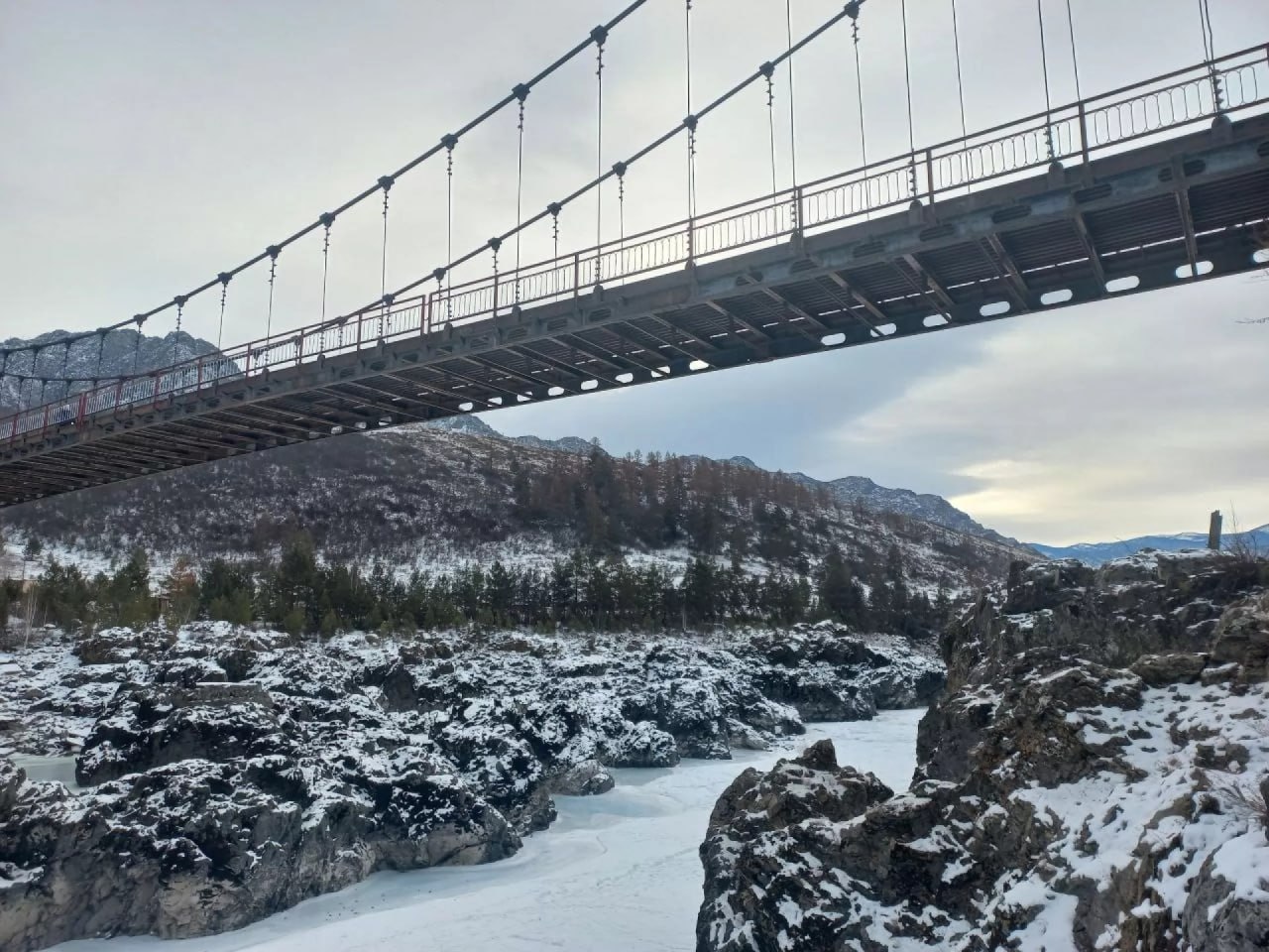 Ороктойский мост в Республике Алтай зимой: сказочные виды
