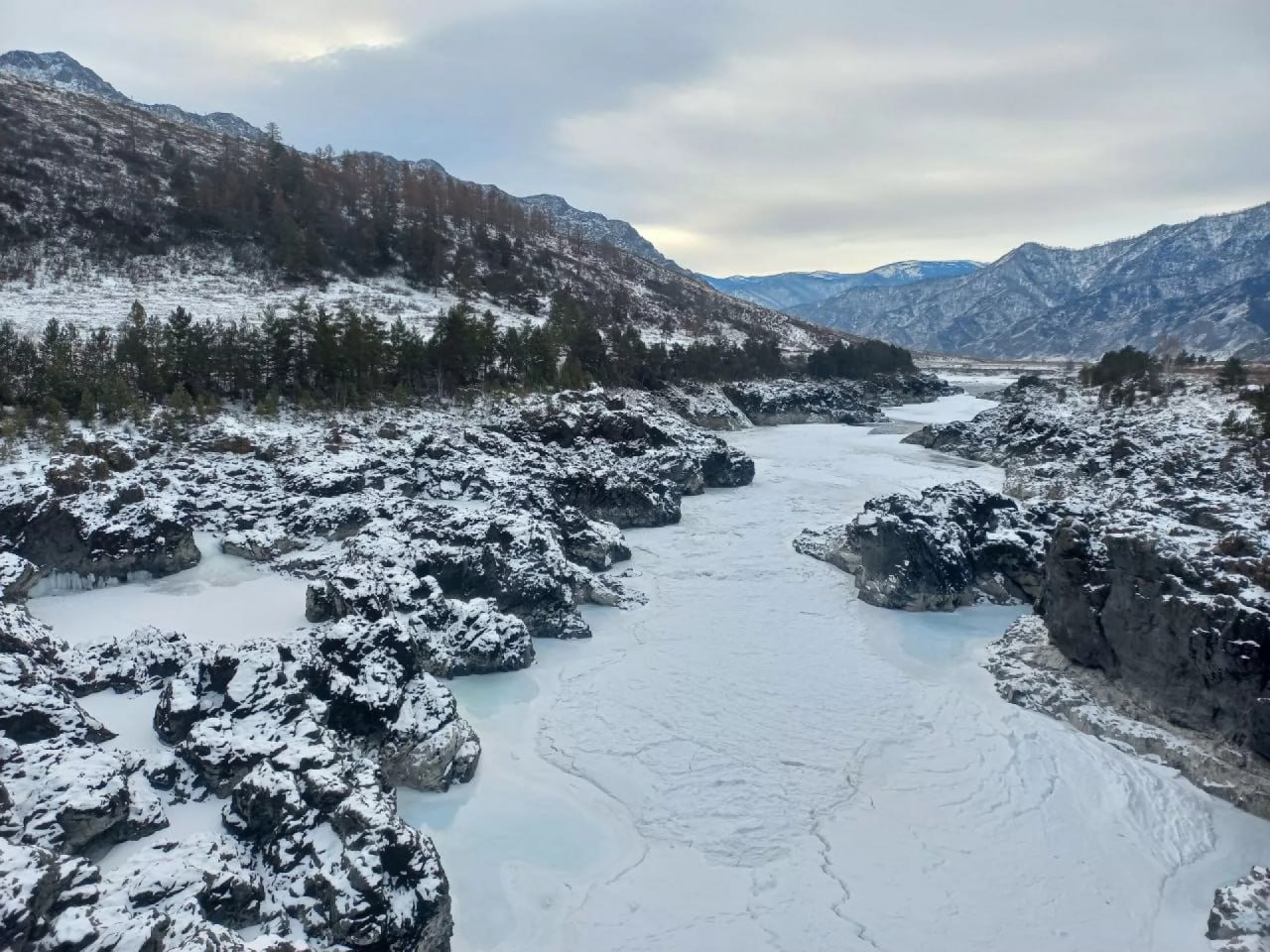 Одна из достопримечательностей региона находится в Чемальском районе. В холодное время года здесь тоже достаточно людно – белые горные пейзажи вызывают восторг, а потрясающие виды на заснеженную Катунь завораживают.