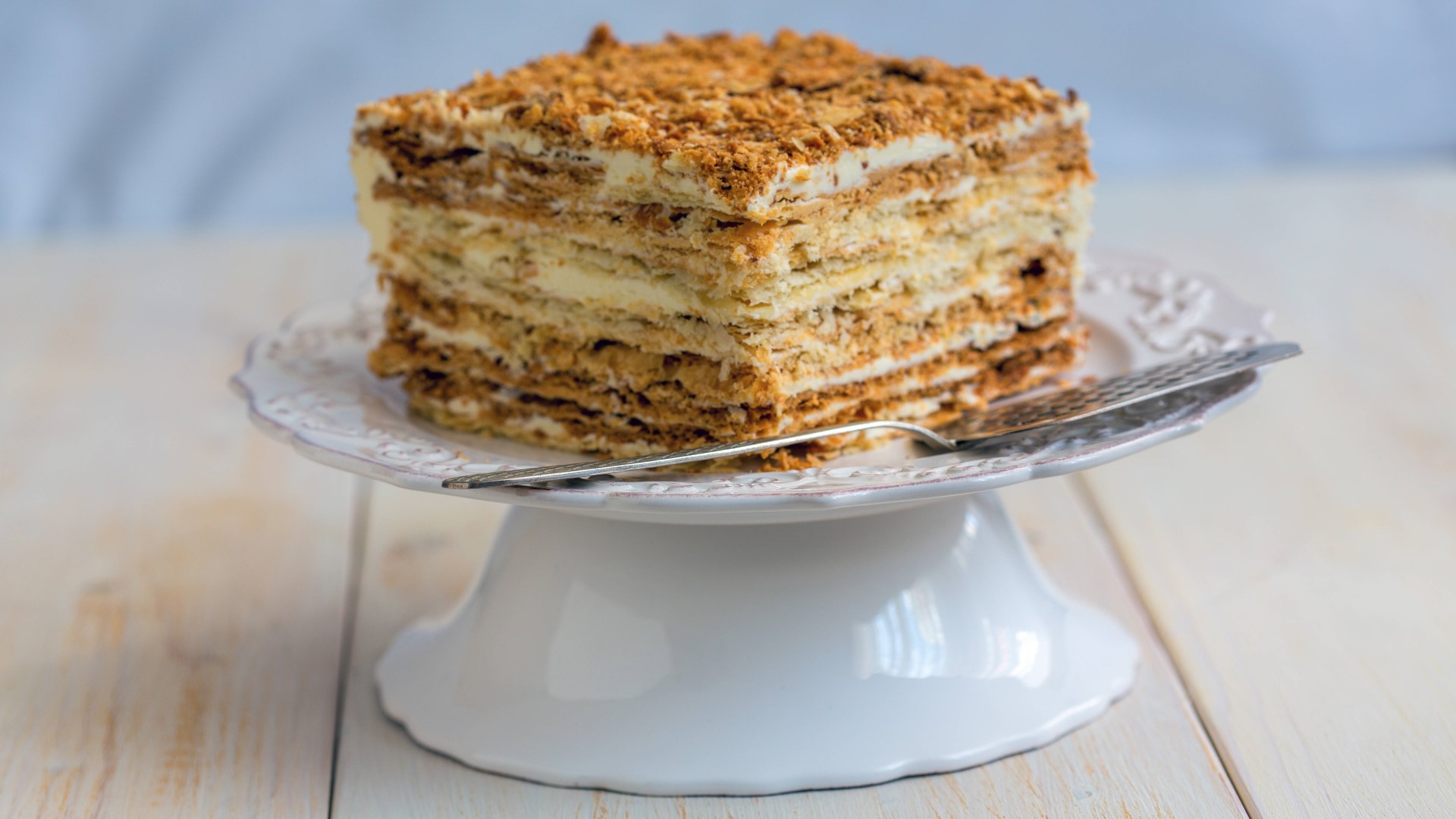Необязательно разогревать духовку и долго возиться с тестом, чтобы подать к чаю вкусный торт. Например, этот «Наполеон» готовится без выпечки. К тому же в его состав входят самые простые ингредиенты.