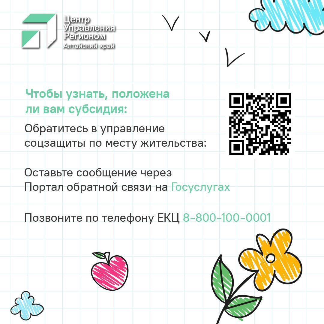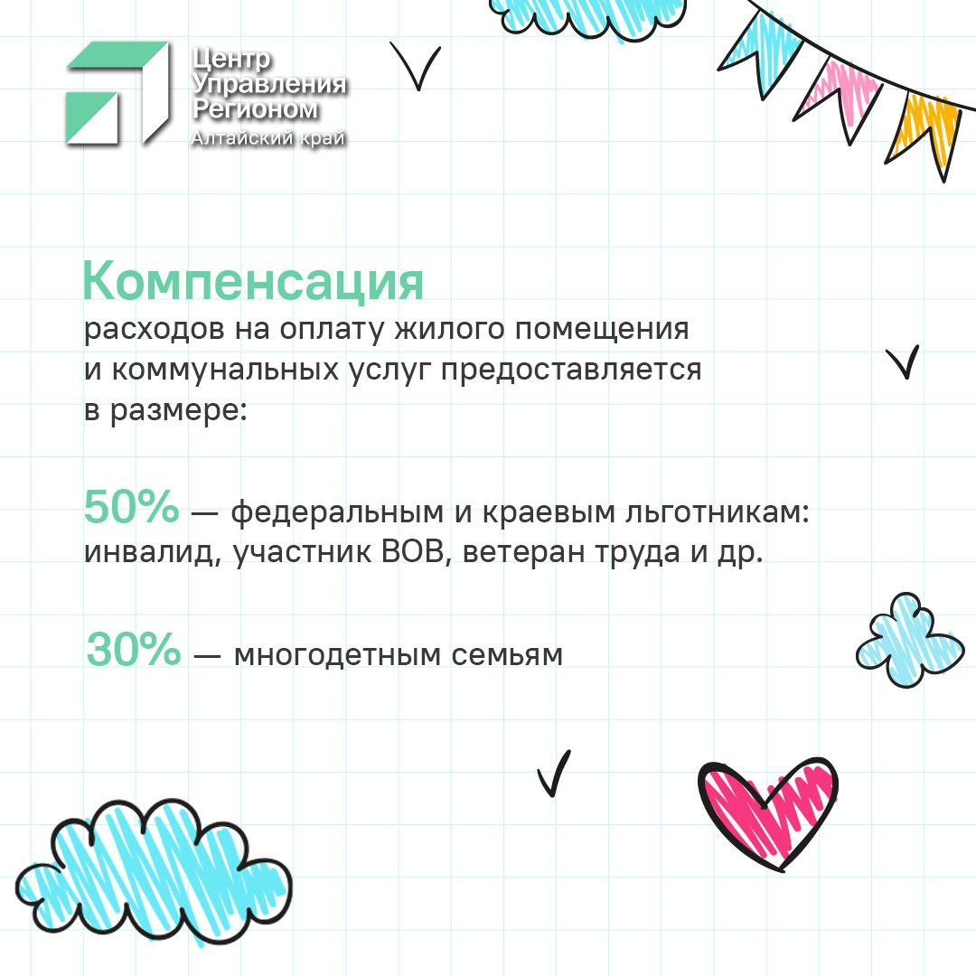 Жители Алтайского края могут получить социальную поддержку на оплату коммунальных услуг. Подробности в карточках.