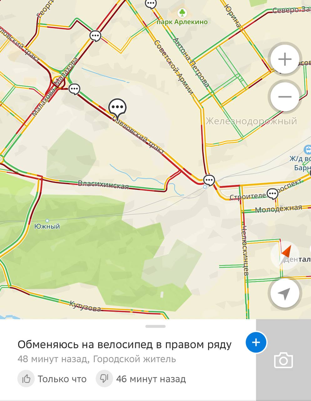 В 10-балльных пробках утром 13 января стоит весь Барнаул и подъезды к нему
