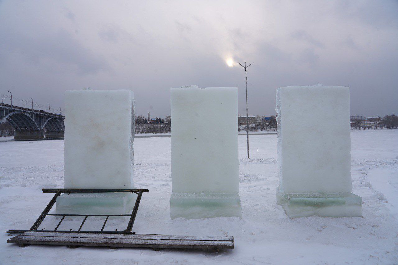 На пляже около коммунального моста в Бийске начались приготовления к празднованию Крещения Господня