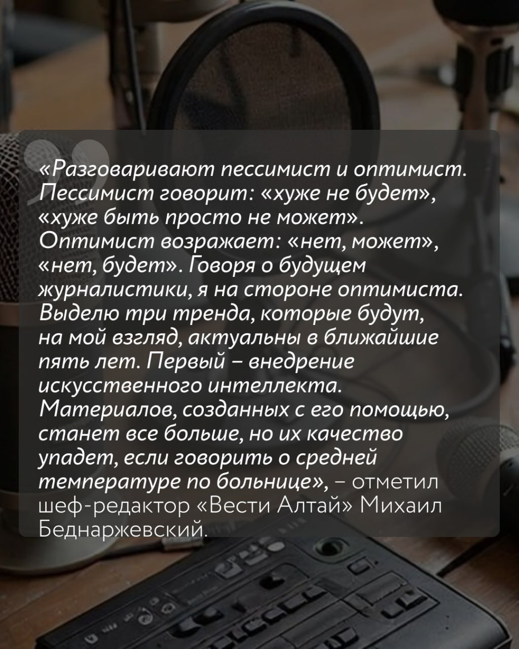 Радиостанция @businessfm_brn поговорила с представителями нескольких ведущих СМИ Алтайского края и узнала, каким видят журналисты свою профессию в будущем.