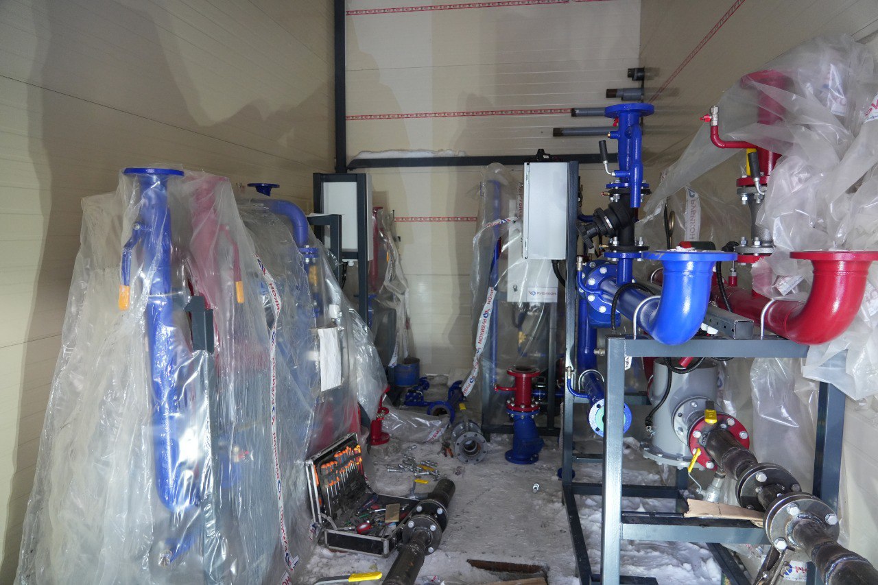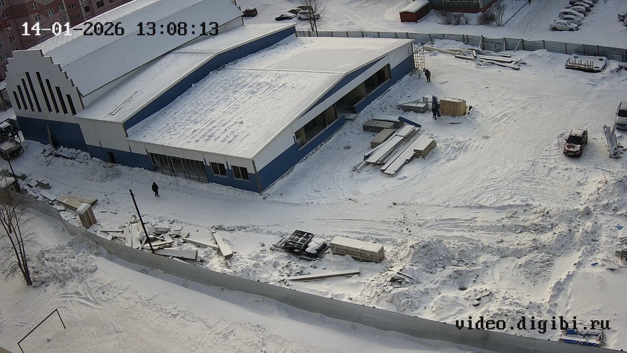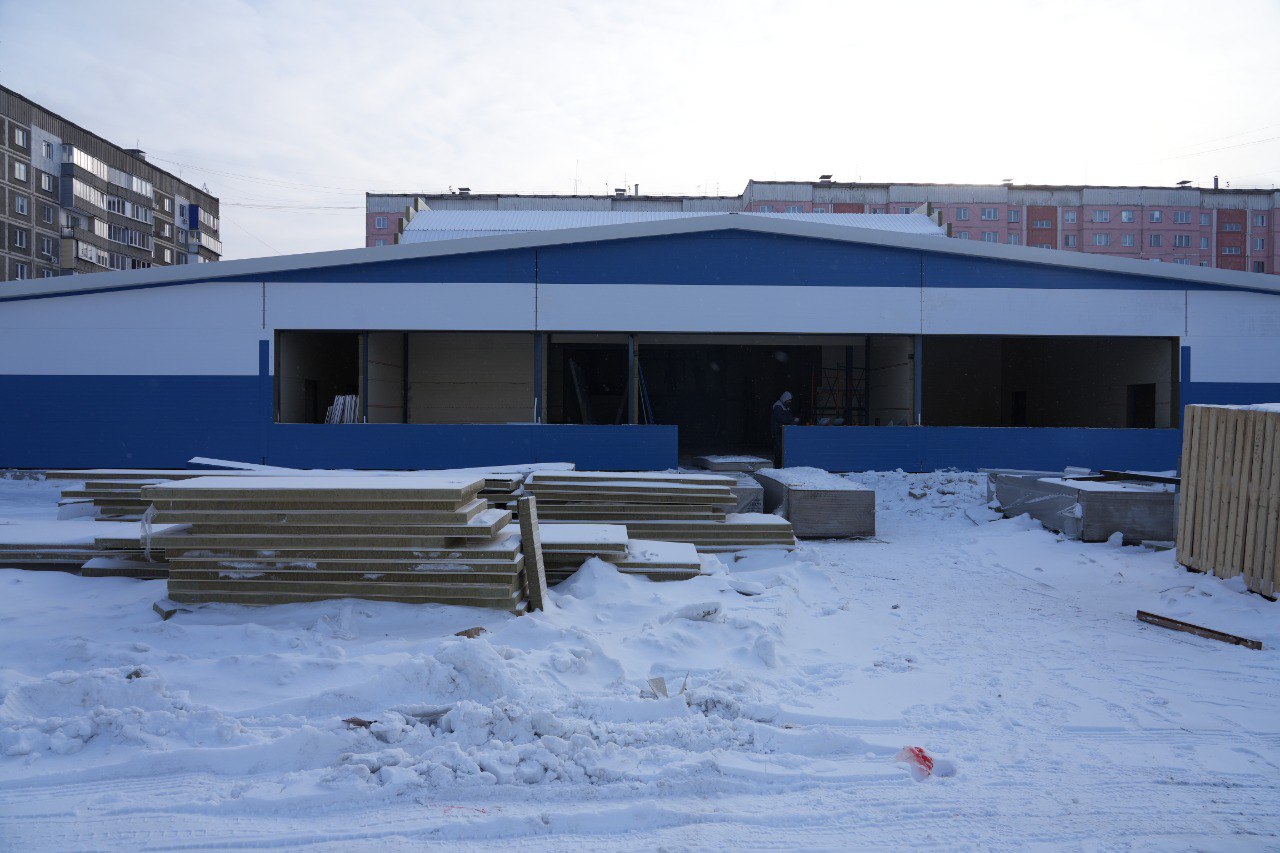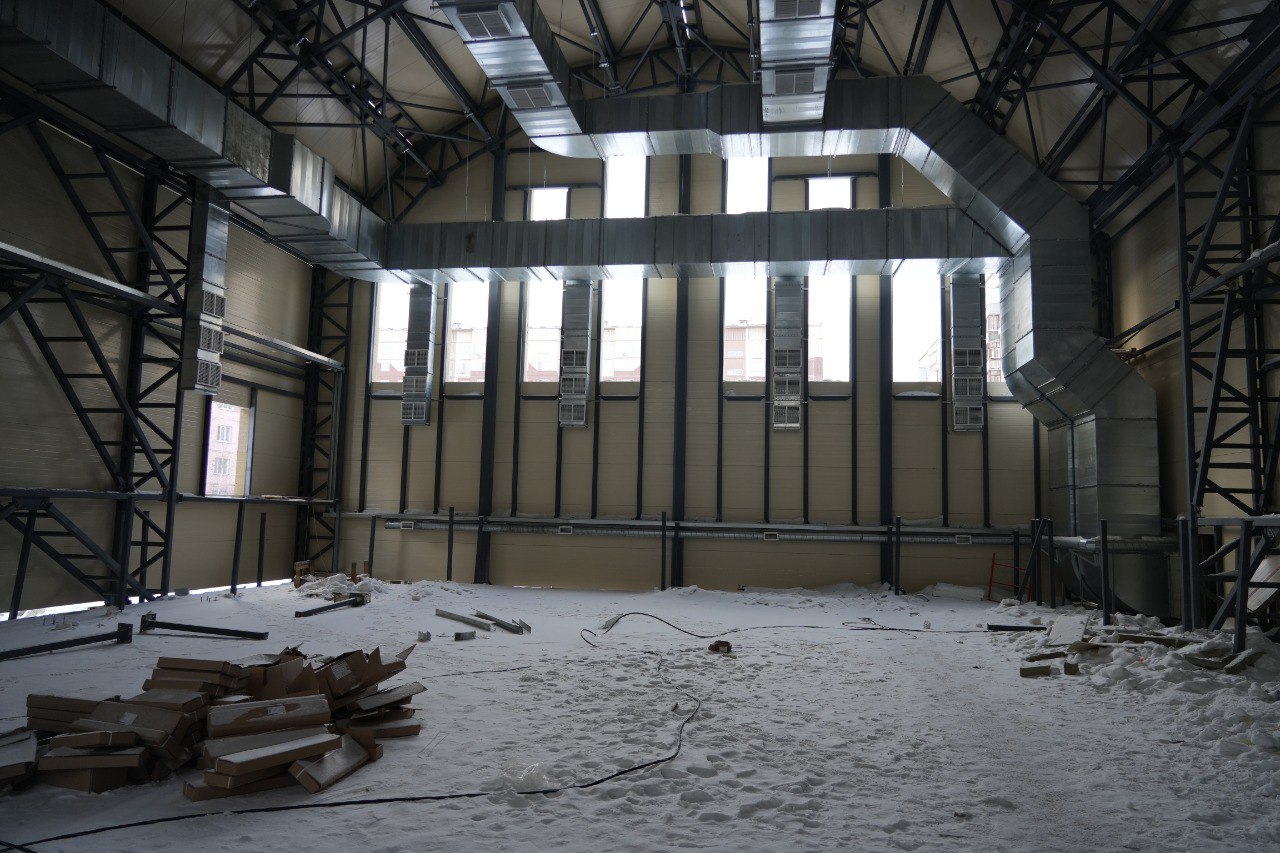 Сейчас специалисты занимаются монтажом оконных и дверных блоков, фасонных элементов здания, устройством системы отопления и системы внутреннего электроснабжения.