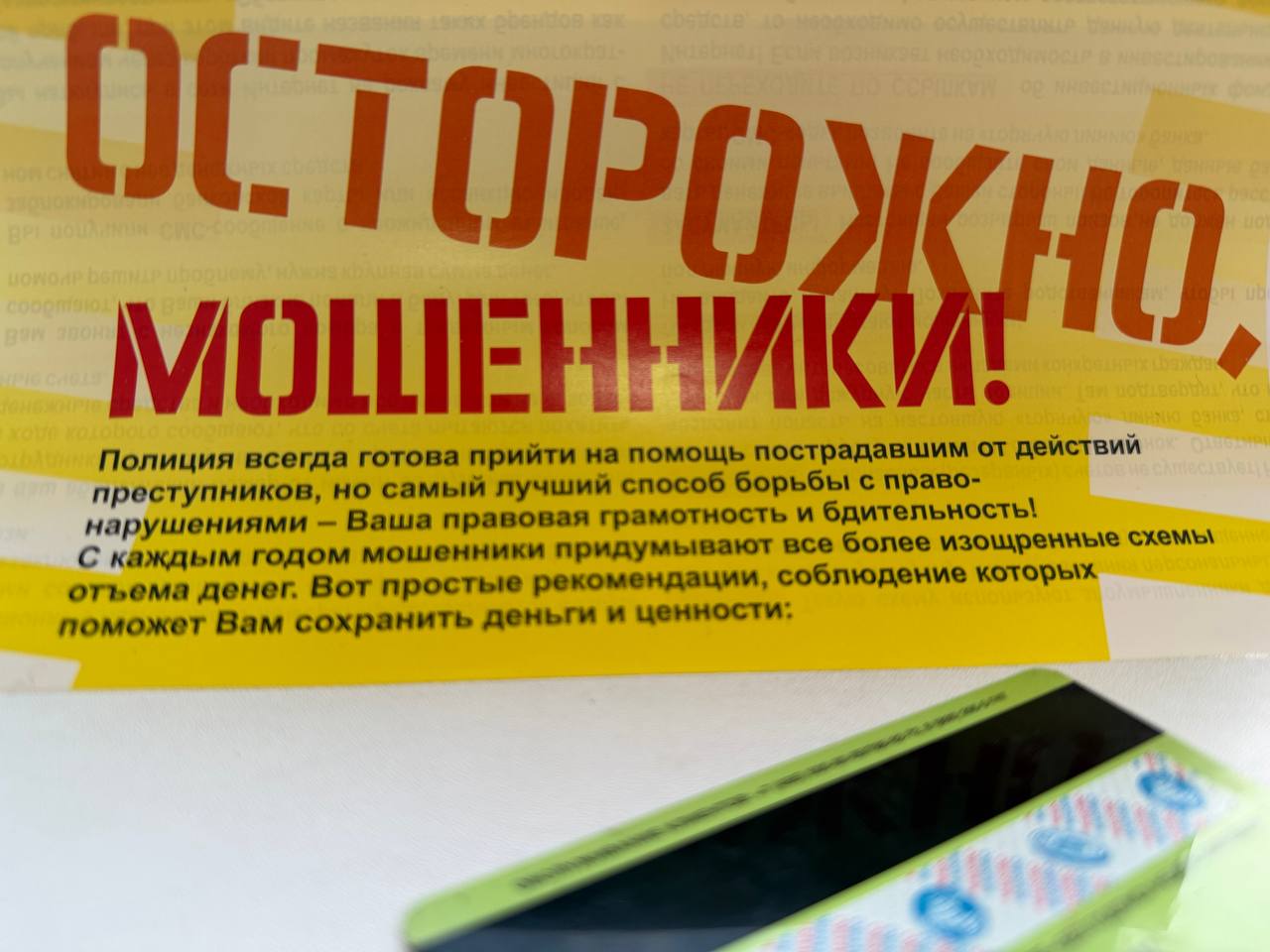 Полиция предупреждает: никогда не отправляйте фото паспорта, банковских карт и других документов незнакомым лицам. Не сообщайте коды подтверждения, приходящие в SMS или push уведомлениях. Эти данные предназначены только для вас. Оформляйте кредиты и карты только лично, в отделениях банков или через официальные приложения. Если возникли сомнения - прекратите разговор и самостоятельно перезвоните в банк по номеру с официального сайта.