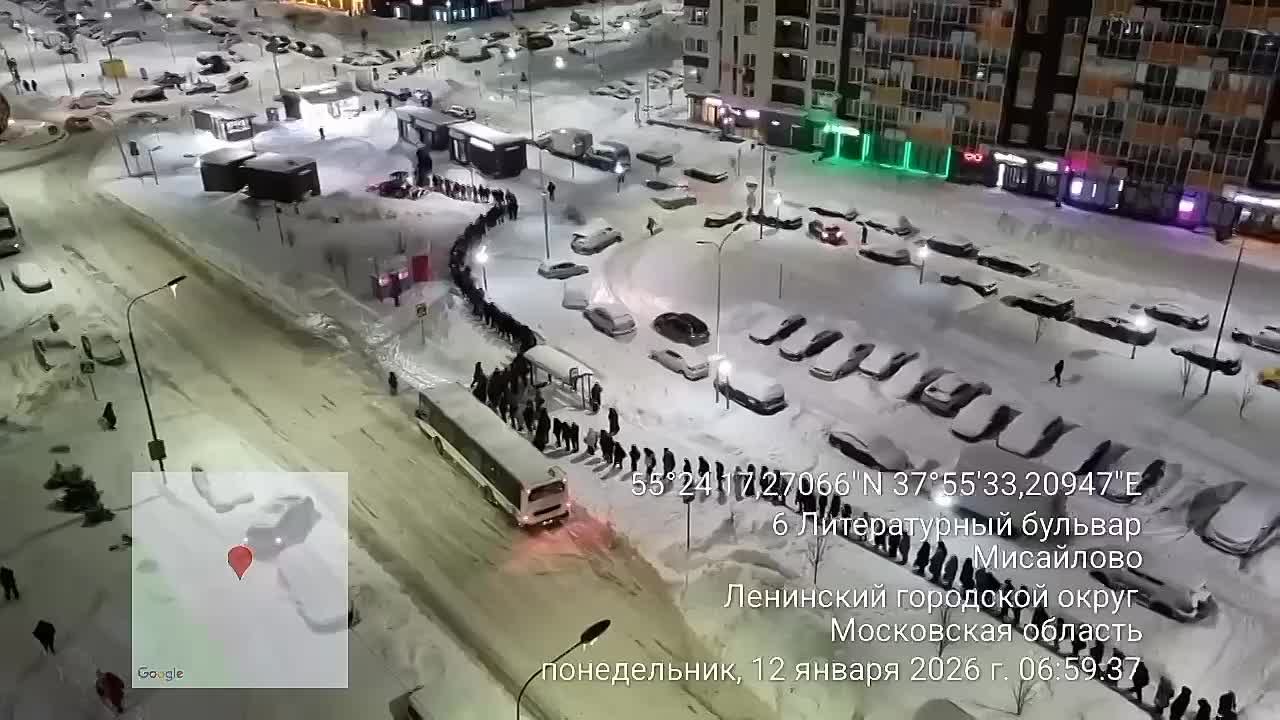 Огромную вереницу людей запечатлели в 7 утра в Московской области в первый рабочий день этого года.