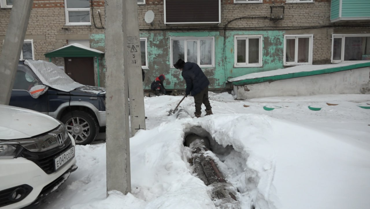 По предварительной информации, из-за сильных морозов произошло перемерзание наземной части трубы теполосетей. Из-за чего случился порыв и тепло перестало поступать в дома.
