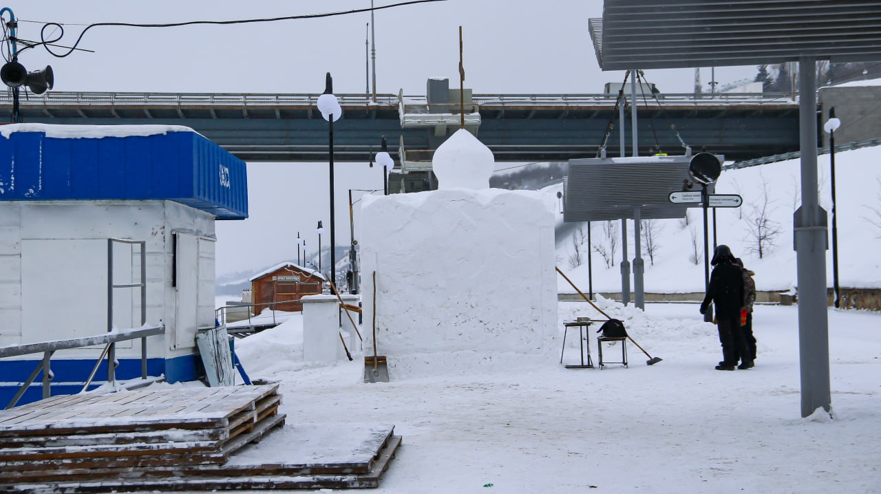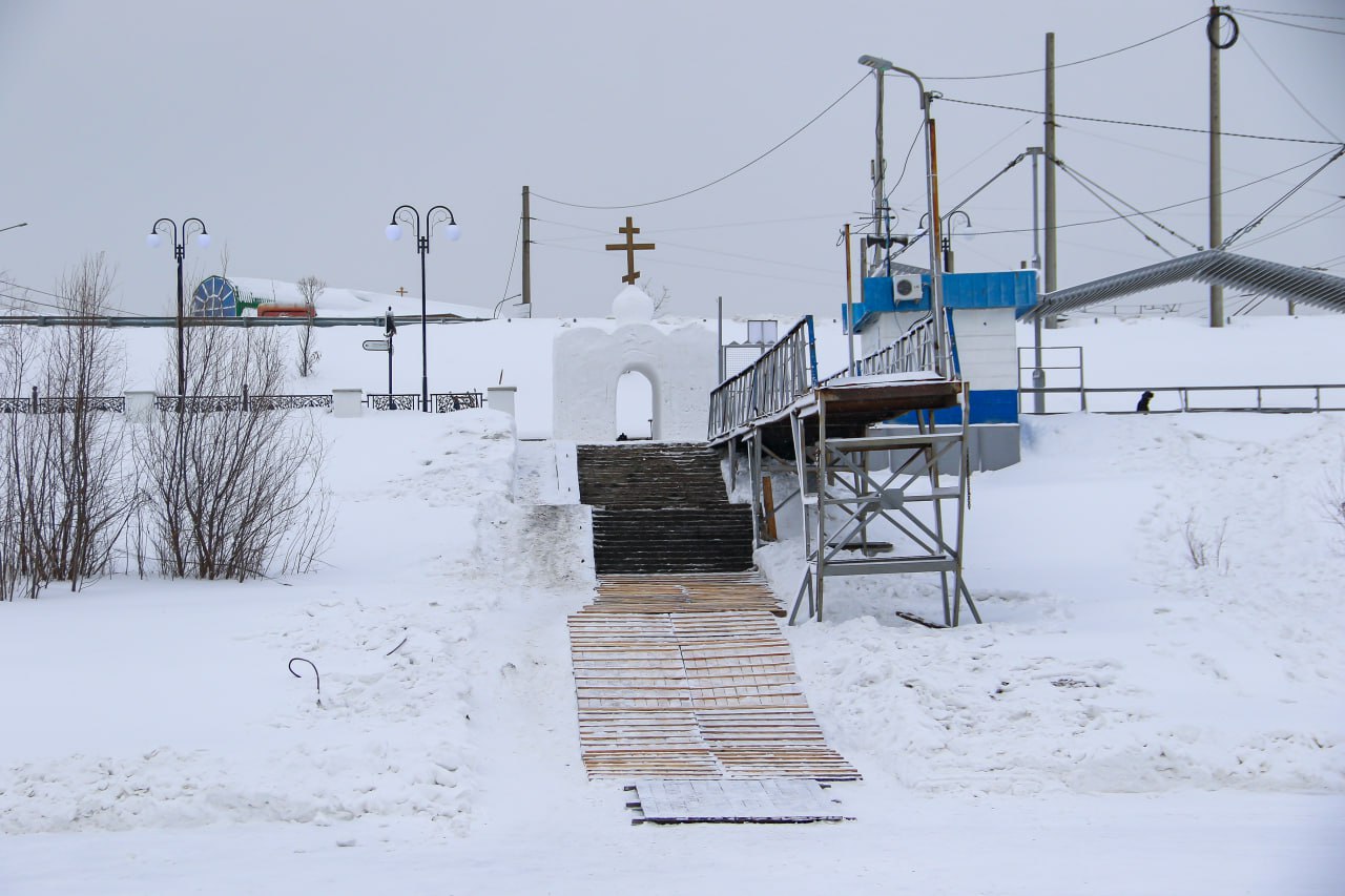 На Оби работы начались 13 января: здесь создают снежную часовню и готовят место для купели. Завершить обустройство планируют 17 января. Наш фотокорреспондент сделал кадры с места строительства городка.