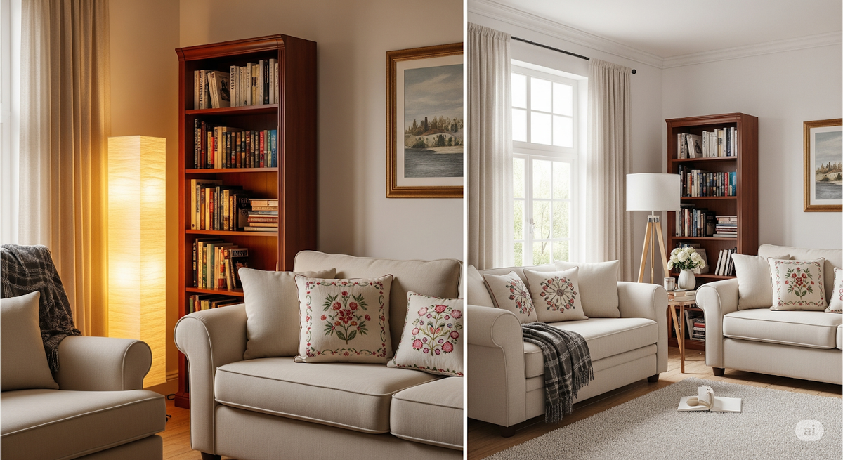 Первый шаг к изменениям — перестановка. Поменяйте местами кресла, ковры или даже диван. Каждый новый ракурс открывает комнату по-новому, создавая атмосферу свежести. Также стоит обратить внимание на полки — их можно разобрать и переосмыслить порядок вещей. Например, измените расположение книг по цвету или добавьте интересные детали: комнатные растения, свечи, фотографии. Эти небольшие изменения сделают пространство более живым.