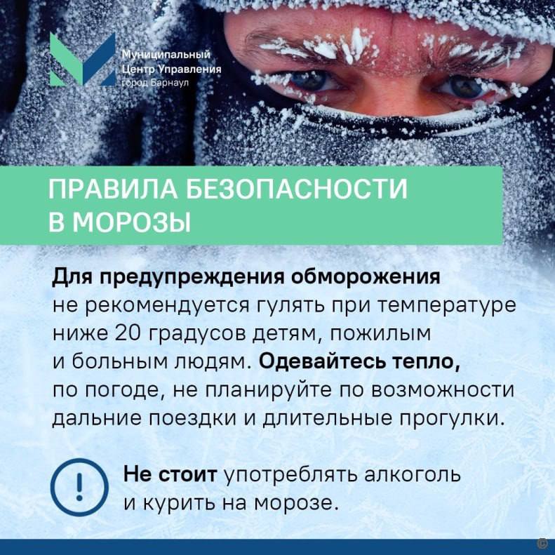 Завтра, 18 января, в Барнауле температура воздуха ночью опустится до -39,-41 гр., днем -29,-31 гр.