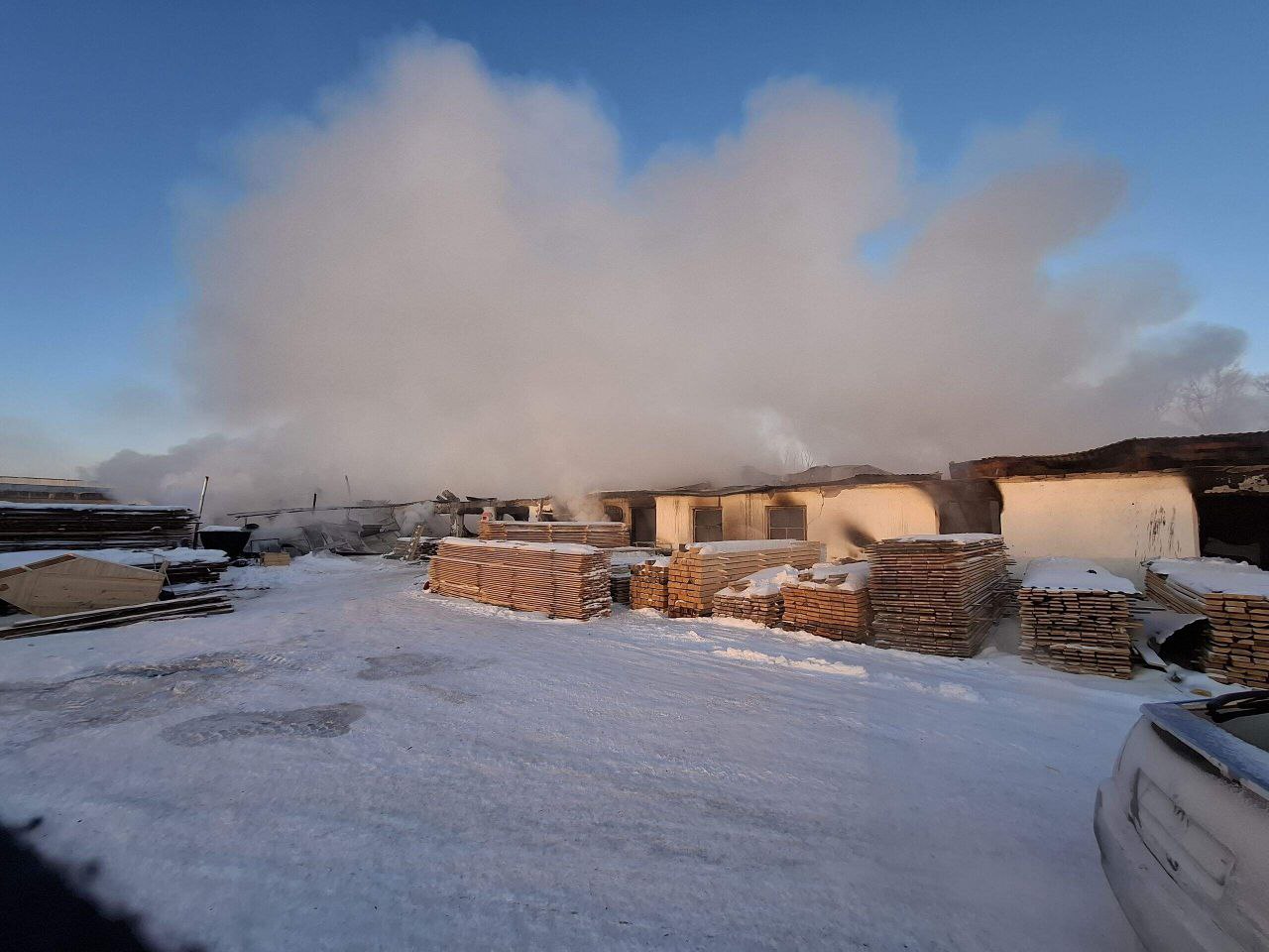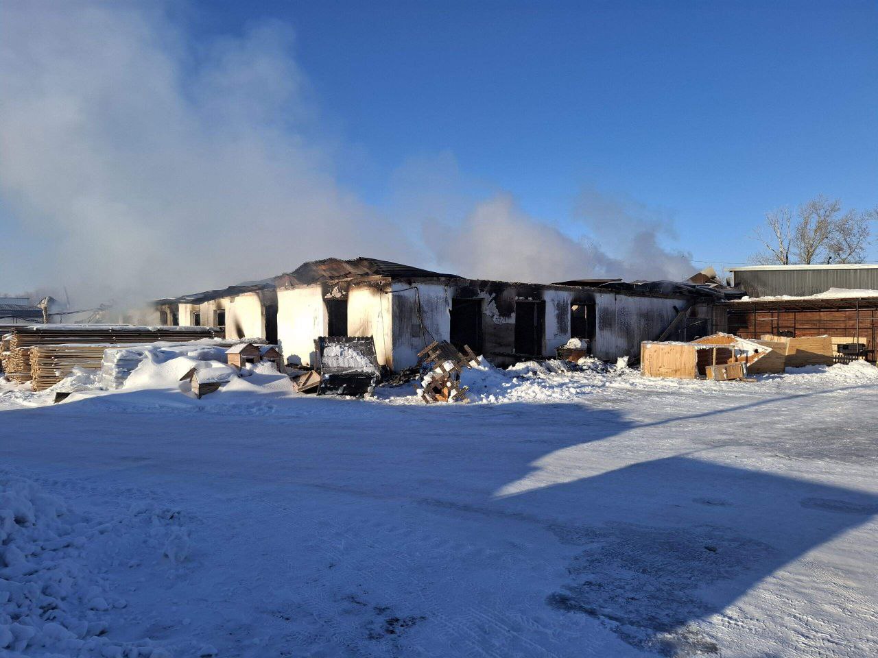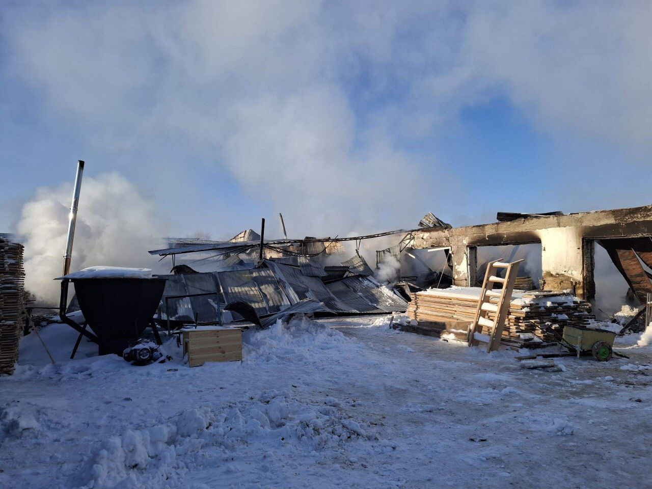 В алтайском селе сгорел деревообрабатывающий цех