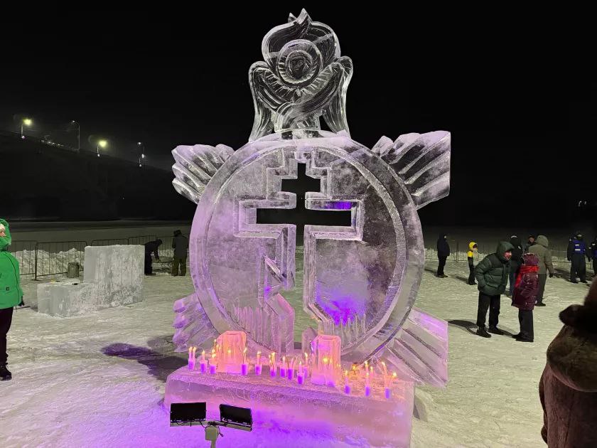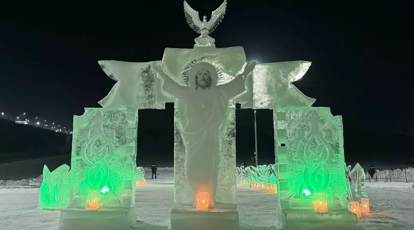 Собравшиеся также смогли полюбоваться ледовой экспозицией. Бийчане загадывали желания и совершали традиционное крещенское окунание.