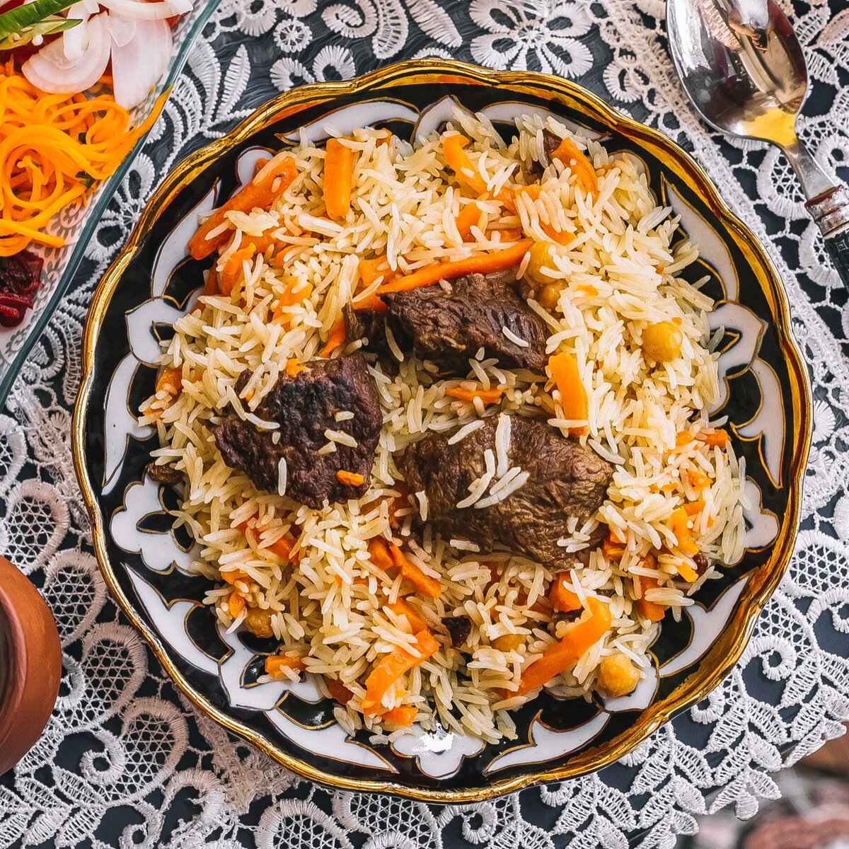 Зачем же этот хлеб нужно добавлять? Дело в том, что в процессе варки плова на внутренней поверхности крышки казана скапливается конденсат, который стекает обратно на рис. Поскольку избыточная влага часто приводит к слипанию зерен, черствый хлеб играет роль своеобразного «поглотителя». Он активно впитывает всю лишнюю влагу, предотвращая образование комков. В конце варки хлеб просто извлекается вместе с тарелкой — и плов оказывается удивительно рассыпчатым и вкусным.