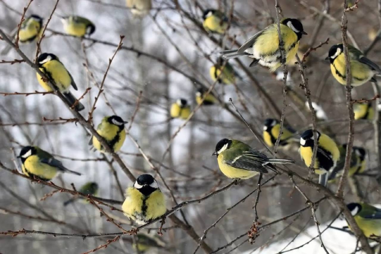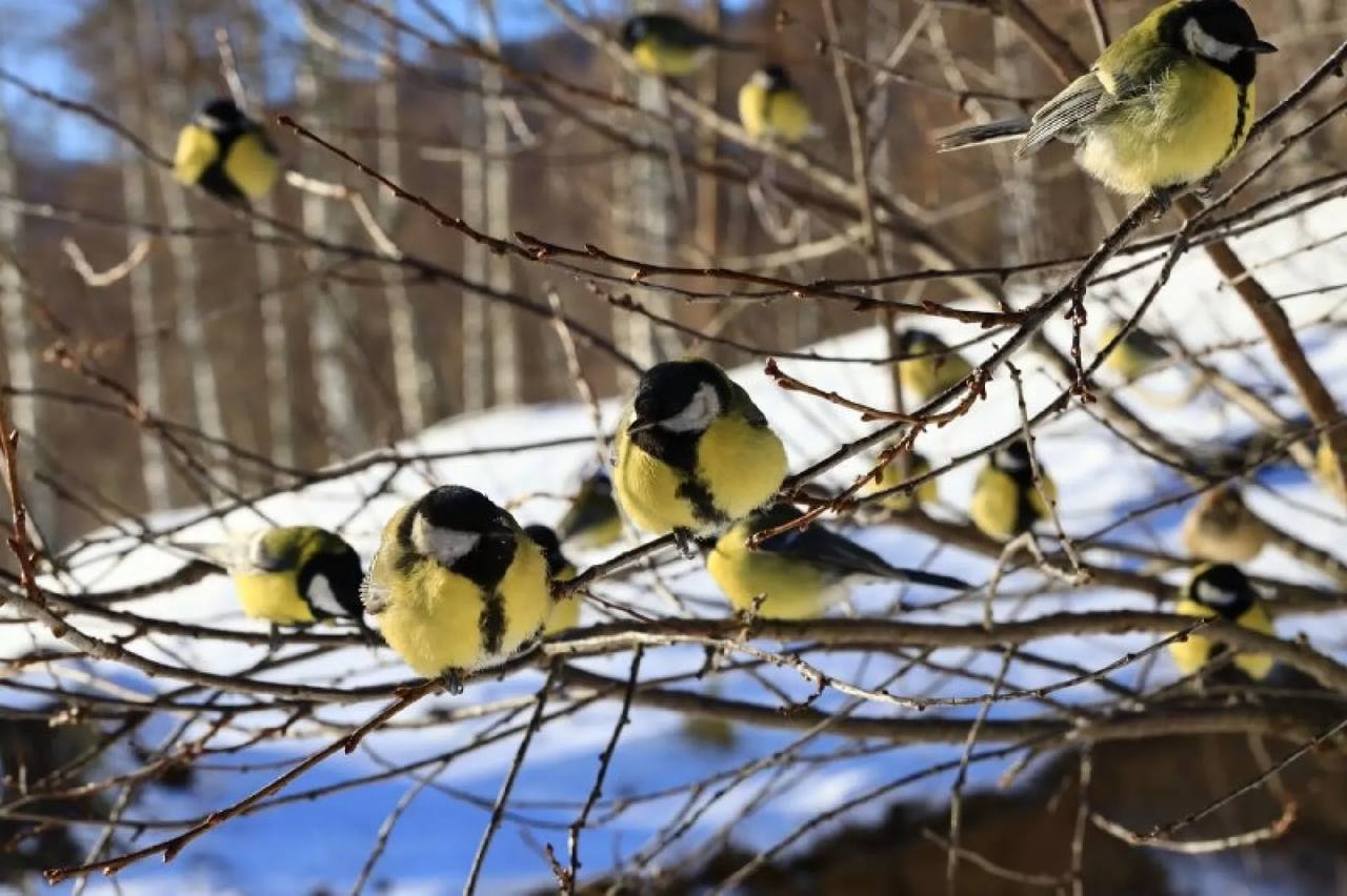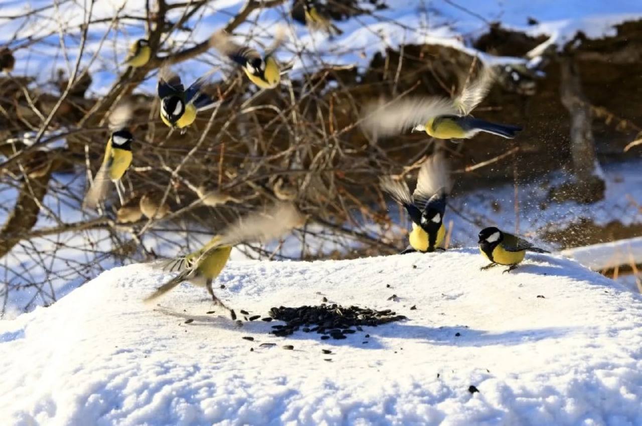 Чудесные синицы слетелись к кормушкам в Алтайском заповеднике