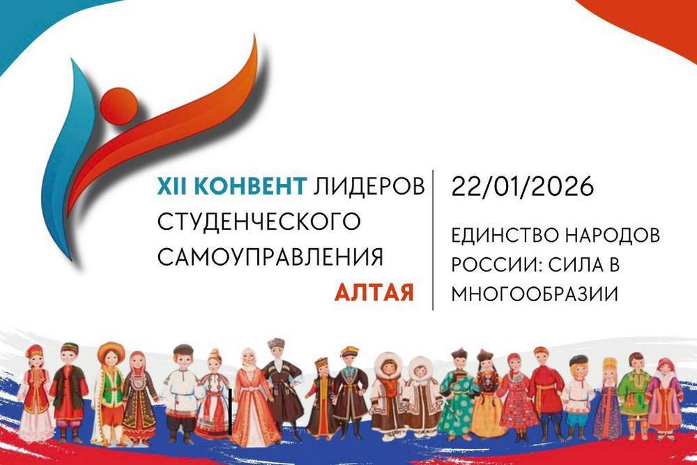 22 января в 11:00 в Парламентском центре стартуем XII Конвент лидеров студенческого самоуправления Алтая. В этом году тема форума — «Единство народов России: сила в многообразии».