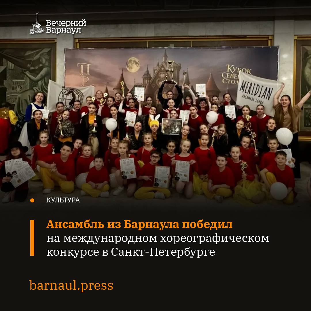 Образцовый детский коллектив Алтайского края ансамбль современного танца «Меридиан» из Барнаула завоевал несколько наград I Международной премии в области культуры и искусства «Кубок Северной cтолицы» в Санкт-Петербурге.