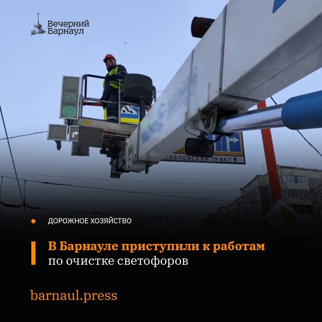 Специалисты МБУ «Барнаулгорсвет» проводят профилактические работы на улицах Барнаула, очищая светофоры от снега и наледи.
