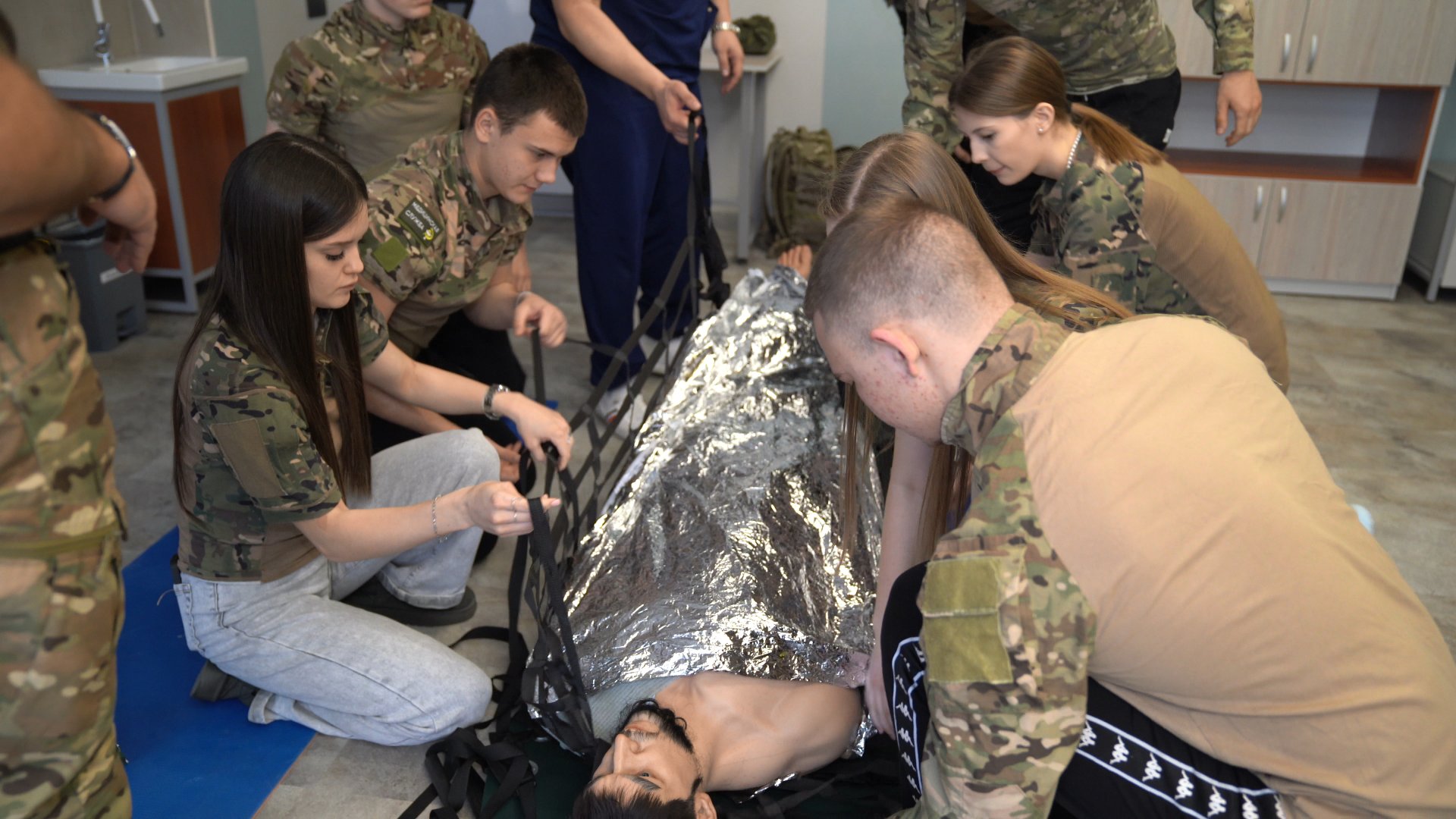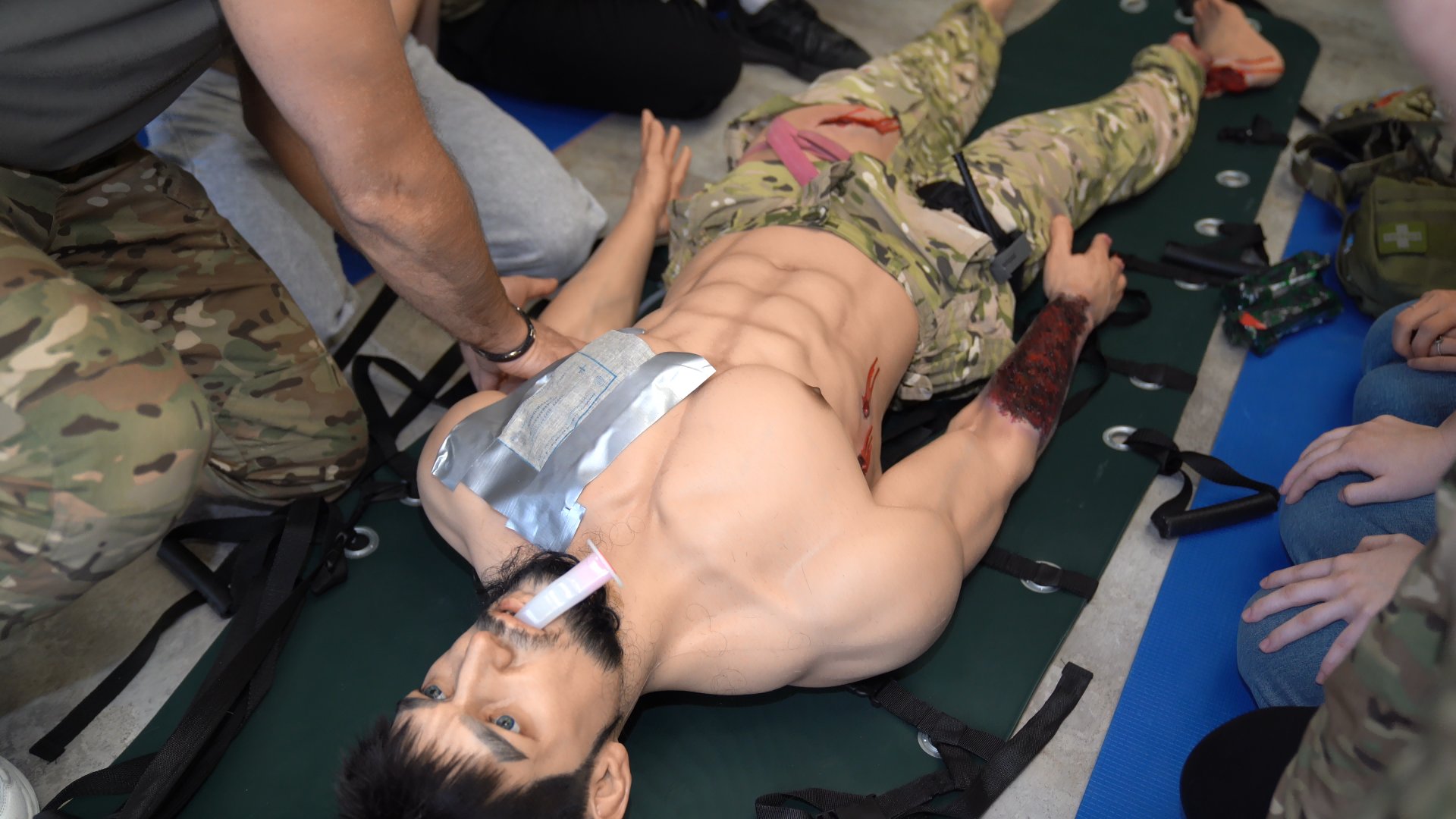 Занятие по тактической медицине прошли студенты Алтайского института развития медобразования. Для большинства это первый опыт работы с «боевой травмой». Наложение жгута, остановка кровотечения, эвакуация пострадавшего — всё отрабатывается до автоматизма на реалистичном манекене. Его в институте назвали Дмитрием.