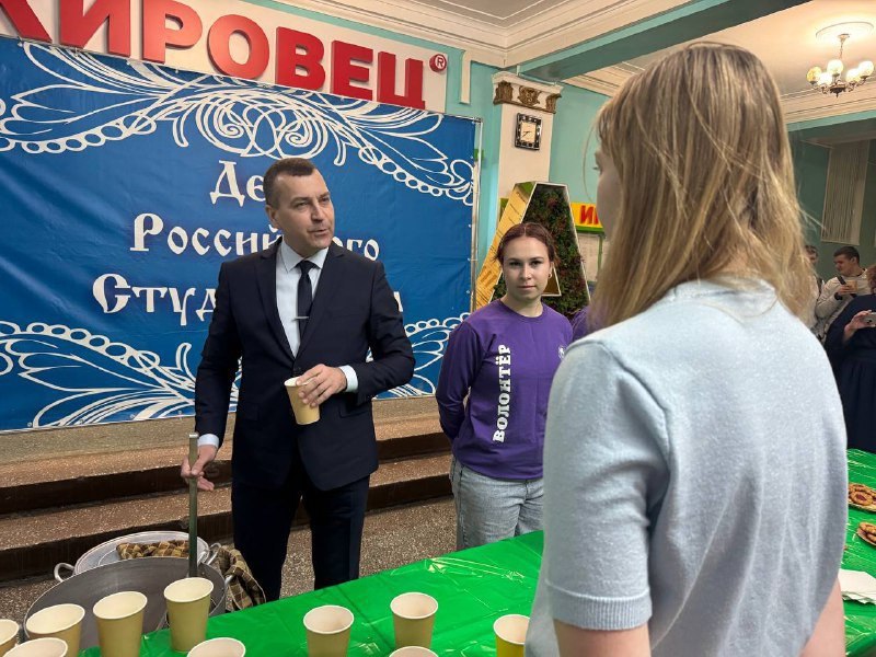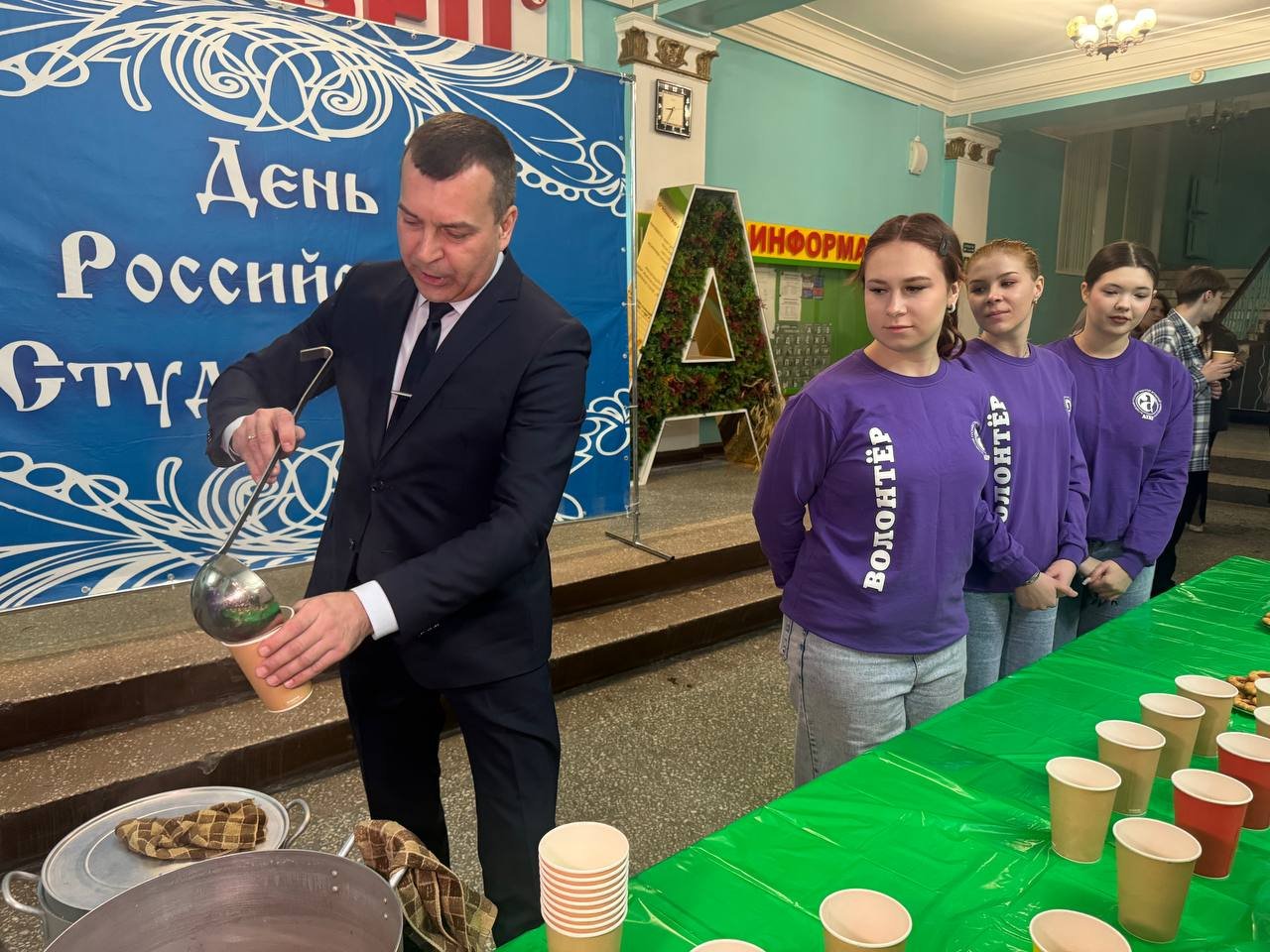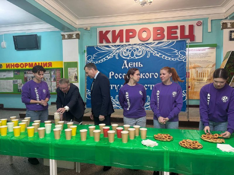 Сегодня в вузе празднуют День студента. Угощения раздаёт лично врио ректора Алтайского аграрного университета Владимир Плешаков.