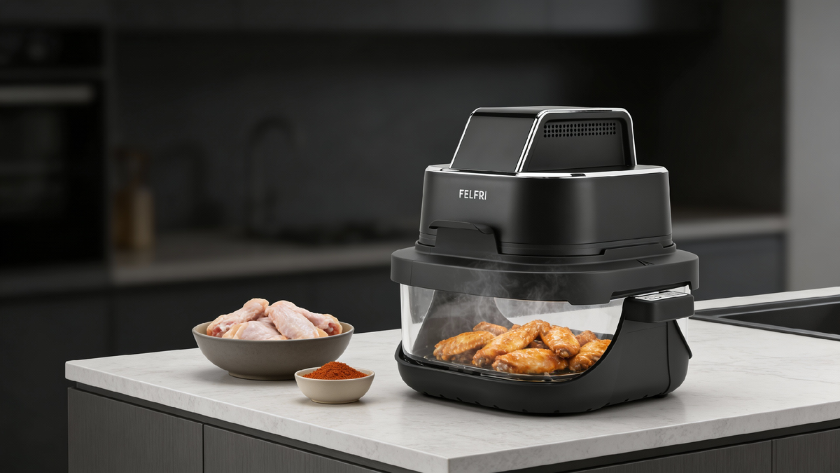 Аэрогриль FELFRI FF-AF-09 с мощностью 1800 Вт — это многофункциональный аппарат со стеклянными чашами и подсветкой, что позволяет следить за процессом без открытия крышки. Комплект включает две чаши и поддоны с антипригарным покрытием, что позволяет готовить несколько блюд одновременно. К тому же доступны функции быстрого разогрева, запекания и мультиповара с простой очисткой и управлением. Гарантия на модель — один год.