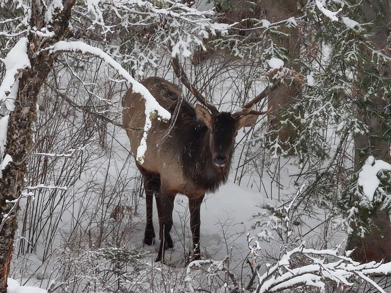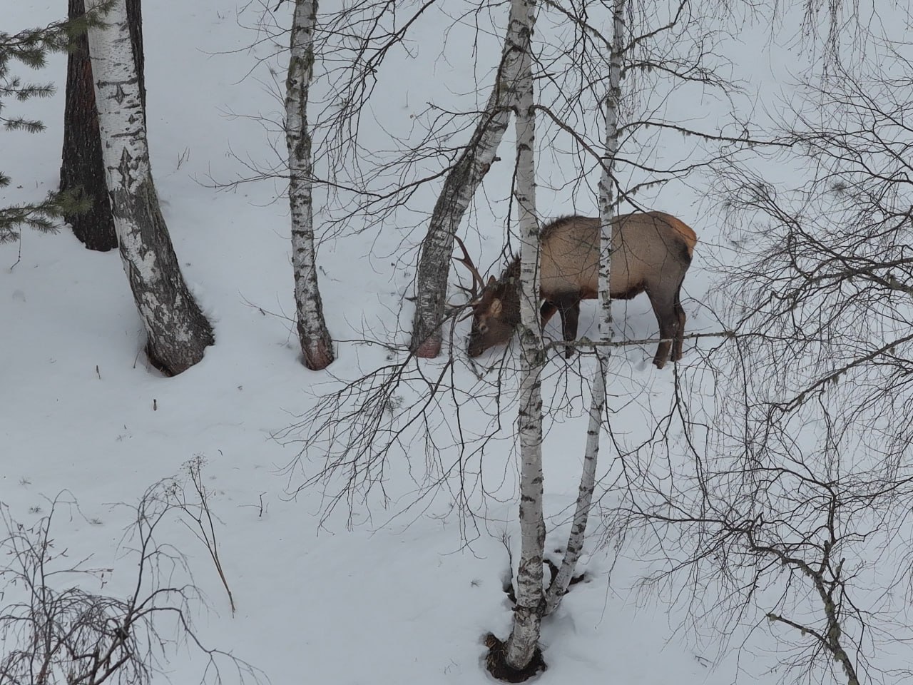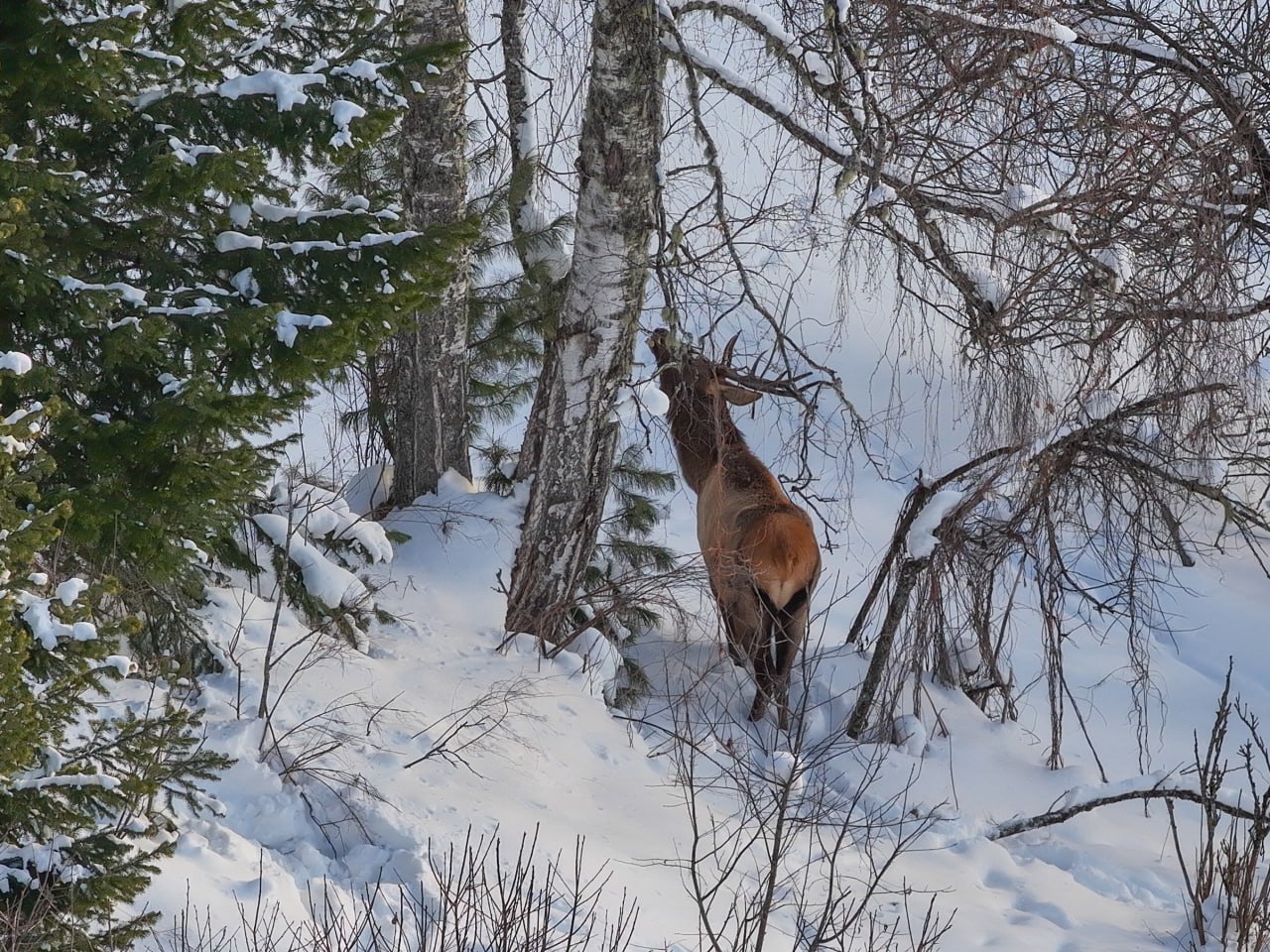 В холодное время года жизнь маралов осложняется из-за морозов, ветра и глубоких сугробов. Снег затрудняет передвижение и усложняет поиск пропитания – побегов, лишайников и мха.